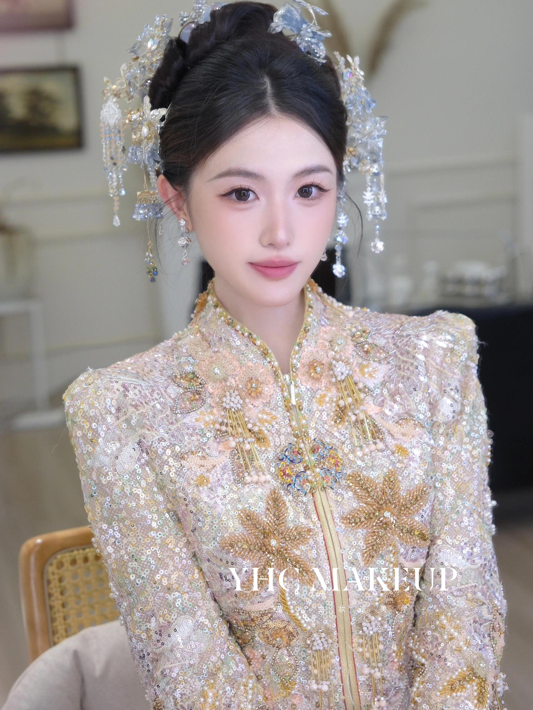 “妆容精致细腻,因为皮肤比较容易敏感,咨询过化 妆师用的 是一线品牌的 化 妆品很是放心,辛苦化 妆师和摄影师了,都很专业。
