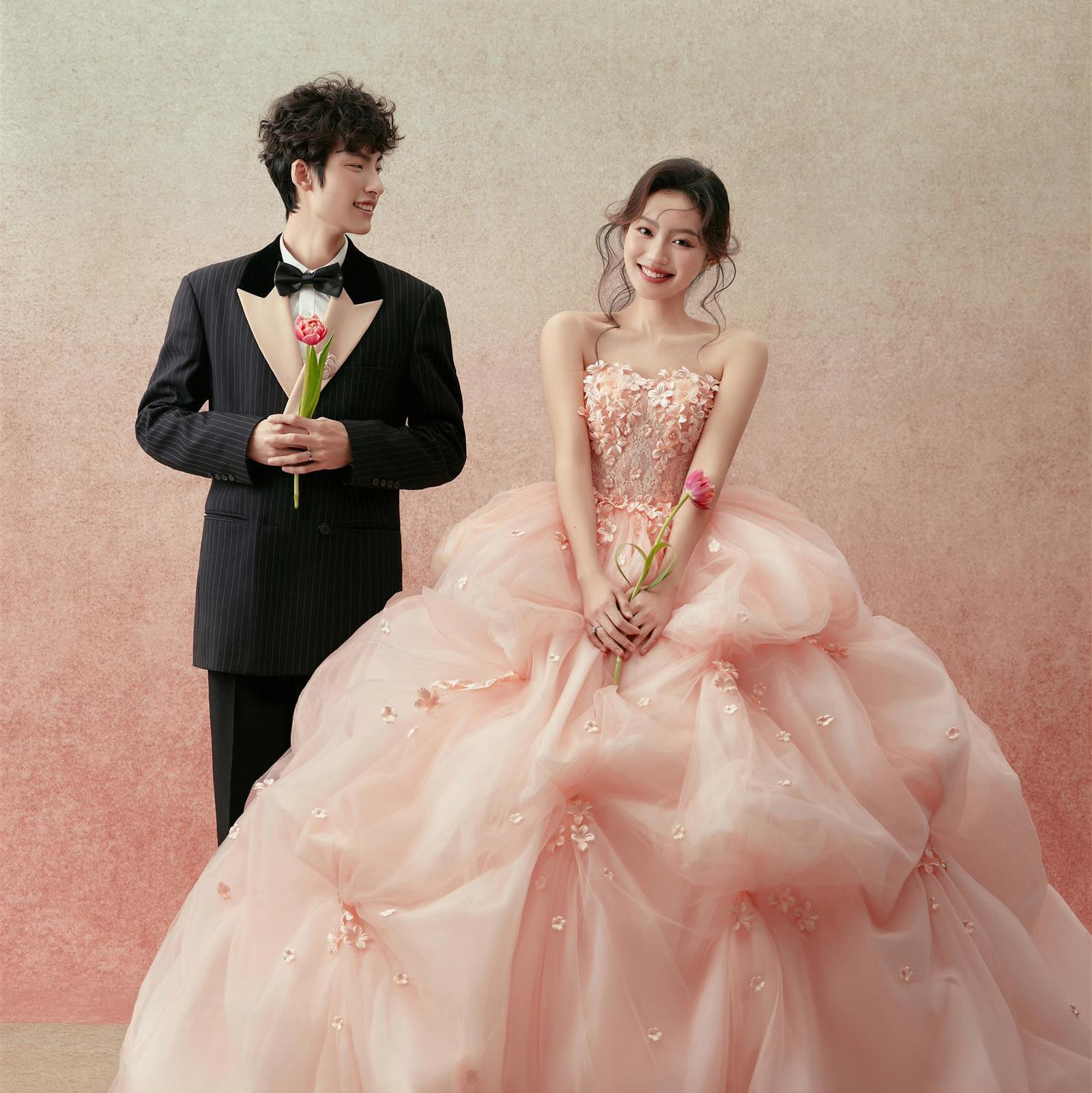 “姐妹们,我刚拍完婚纱照,真的太满意啦!必须来给大家分享一下我的超棒体验🎉 🎀 摄影团队 从接待我们的工作人员,到摄影师、化妆师,每一个人都超级热情和专业!摄影师有着独特的审美和敏锐的捕捉能力,每一个镜头都能抓住我们最自然、最幸福的瞬间📷 化妆师的技术更是没话说,根据我的特点打造出了最适合我的妆容和造型,让我全程美美的! 👗 服装造型 婚纱和礼服的款式超级多,而且都很新很干净。无论是华丽的大拖尾,还是简约的小清新,都能满足我的各种需求。每一套服装搭配的配饰也都精心挑选,细节满分💯 🌄 拍摄场景 拍摄场景丰富多样,内景布置得温馨浪漫,外景更是美到极致。我们在海边、花园、复古建筑等地留下了甜蜜的身影,每一个场景都如梦如幻。 💻 后期制作 后期修图师也非常有耐心,能够理解我的要求,把照片修得既自然又美丽,保留了我们最真实的情感和笑容。 总之,这次婚纱照的拍摄过程非常愉快,结果也超出了我的预期。感谢整个团队为我们打造了如此完美的婚纱照,让我们的爱情留下了最美好的见证💖