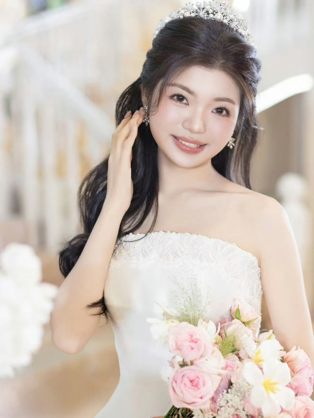 柔和的妆面,梦幻的公主造型,新娘甜度满分