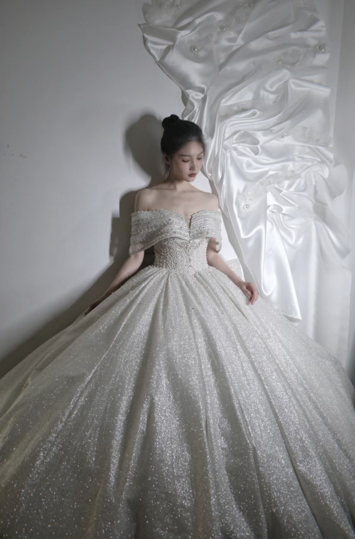 清冷白月光 高级感女主缎面婚纱