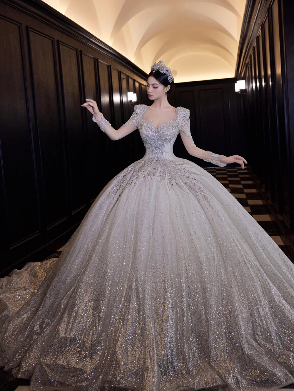新款长袖缎面婚纱