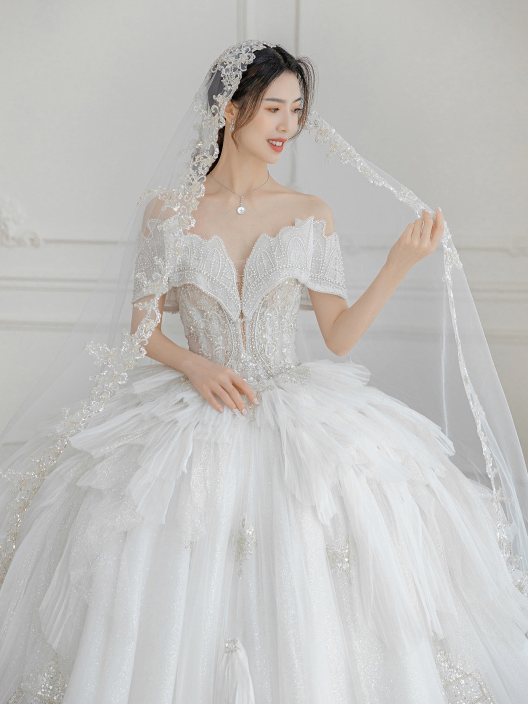 高级感披发主纱妆造