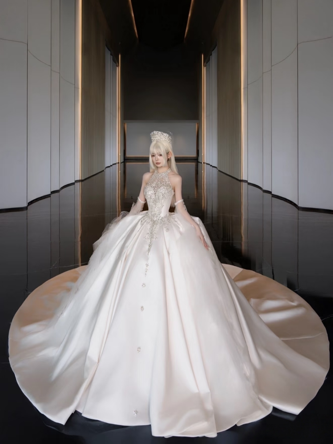 【Amy高级定制】挂脖缎面婚纱