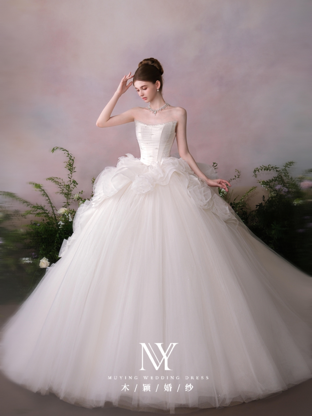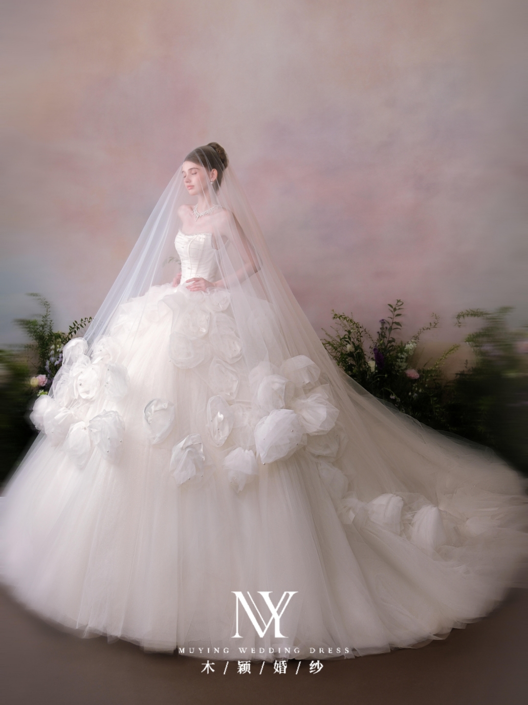 公主梦幻抹胸层层纱长拖尾主纱