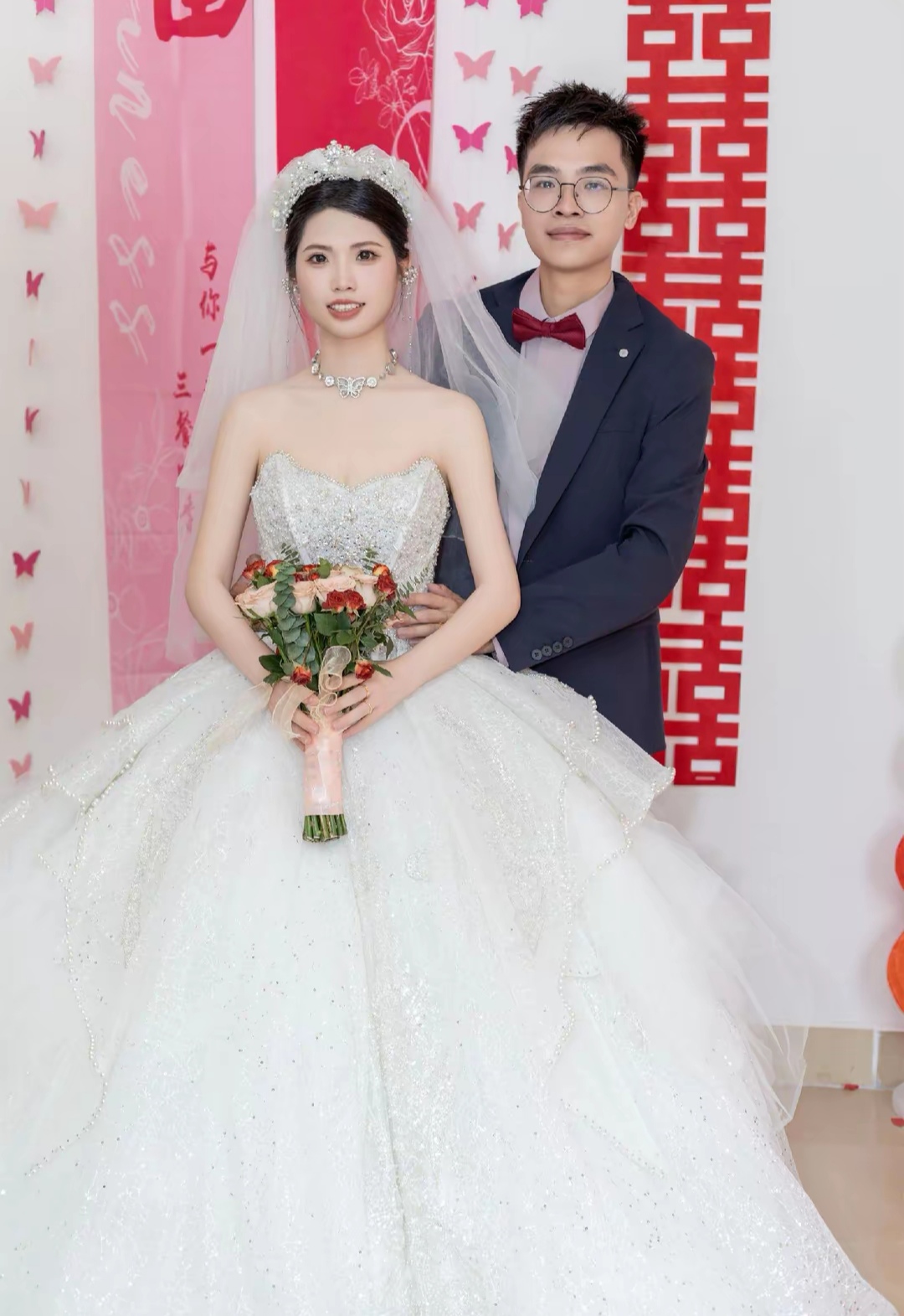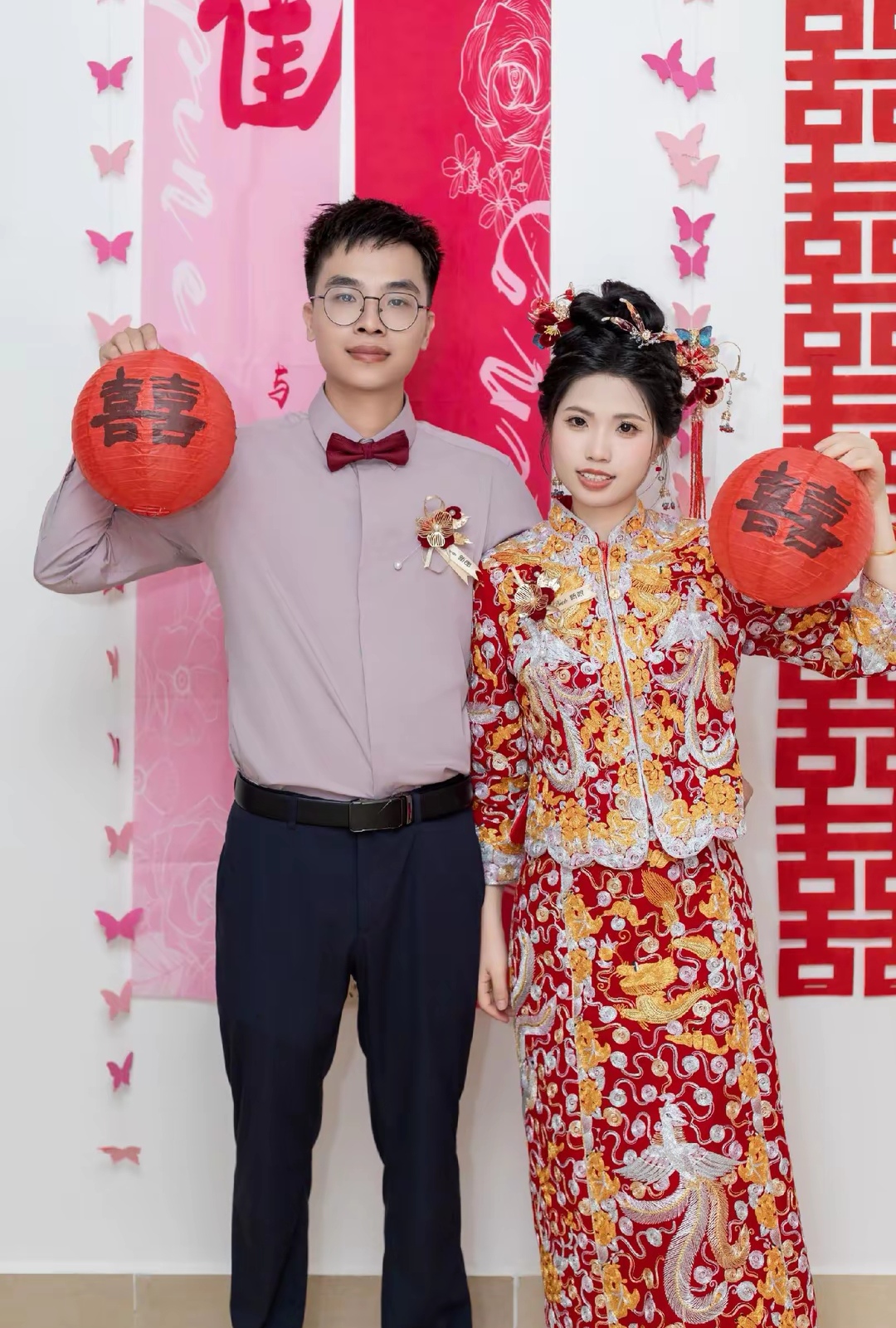 开平婚礼,粉色晨袍