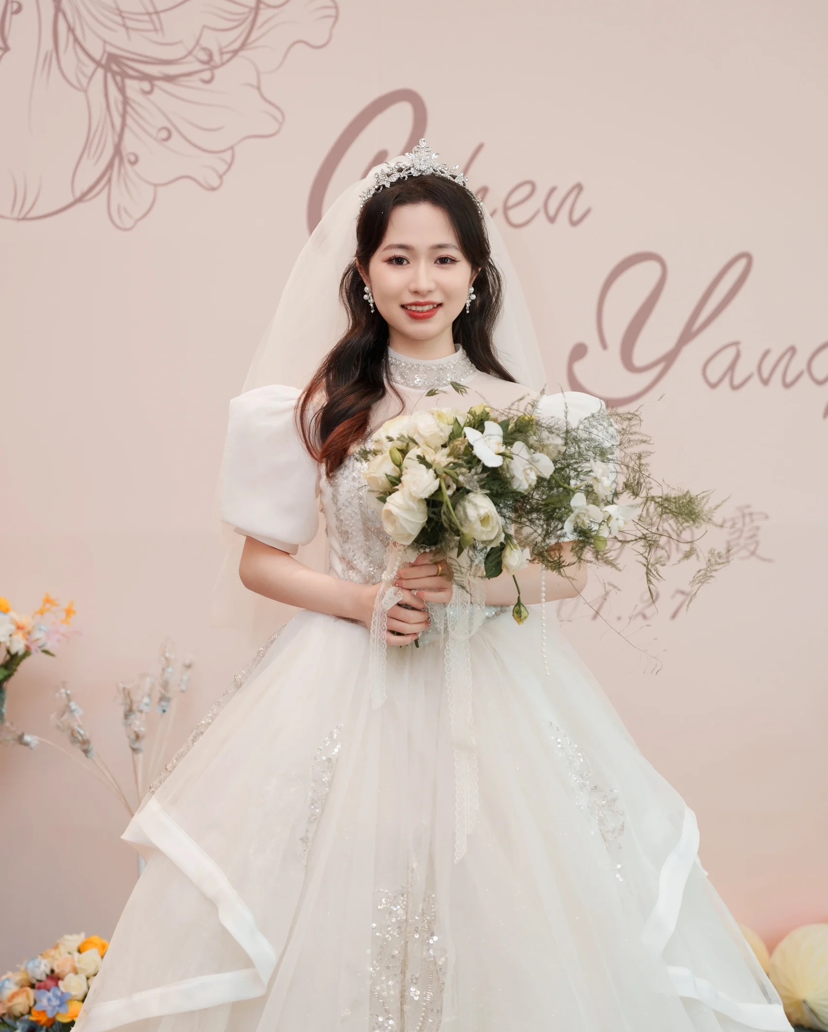 开平婚礼,粉色晨袍