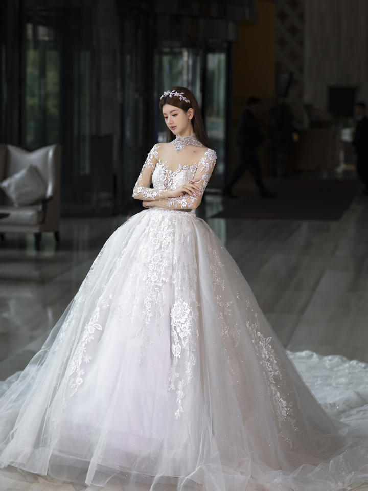 蕾丝长袖婚纱
