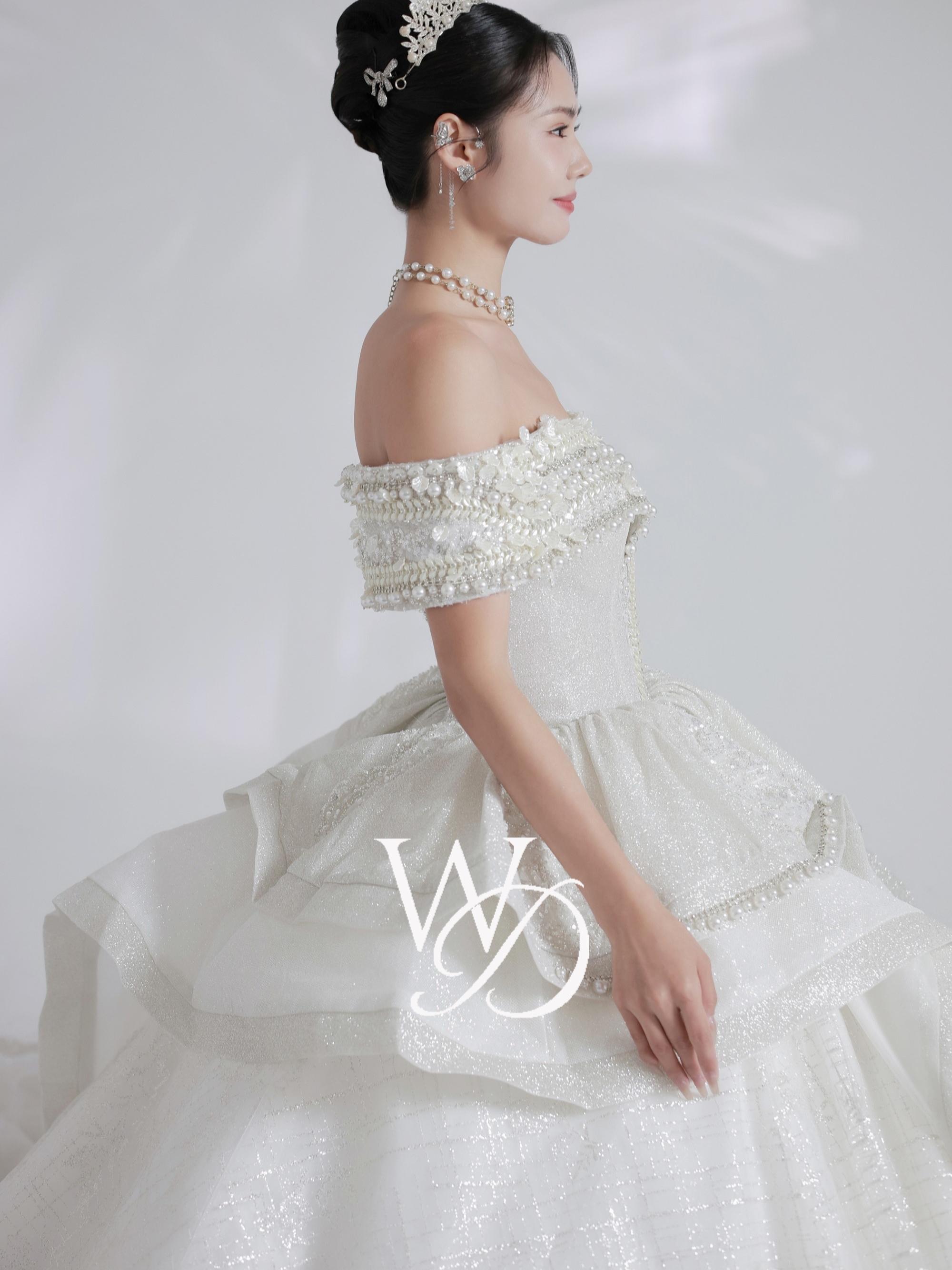 绝 美的重工长拖尾婚纱,心动预警
