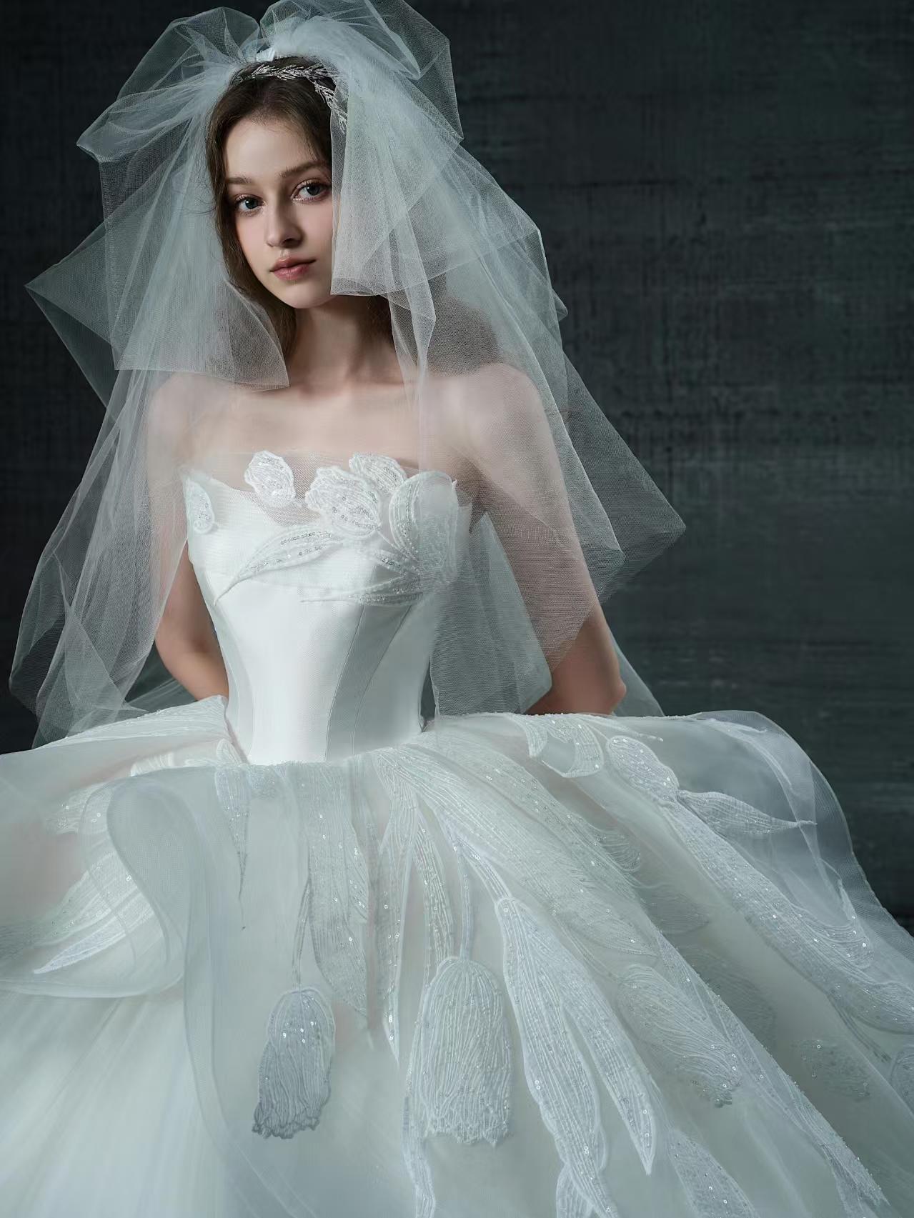 挚爱丨简约齐地缎面主纱
