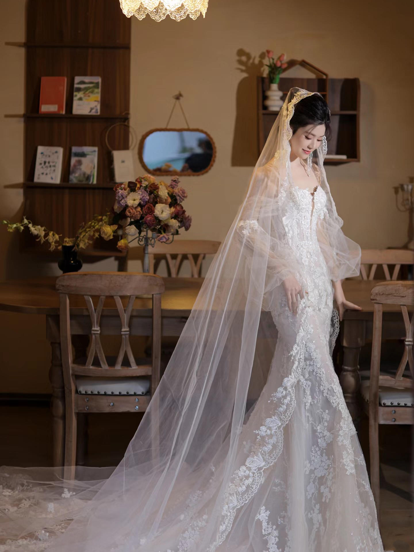 来自蕾丝鱼尾婚纱的温柔