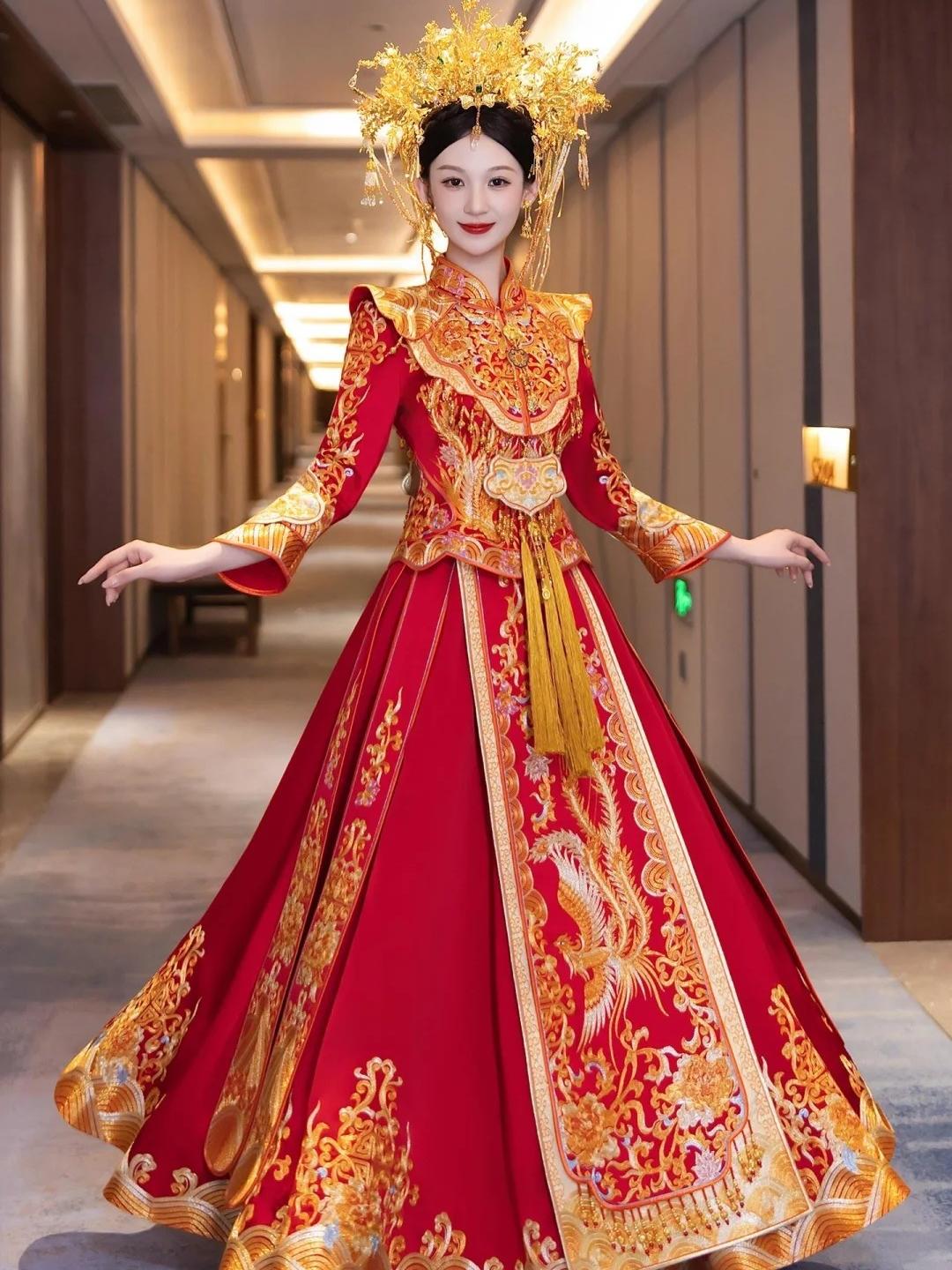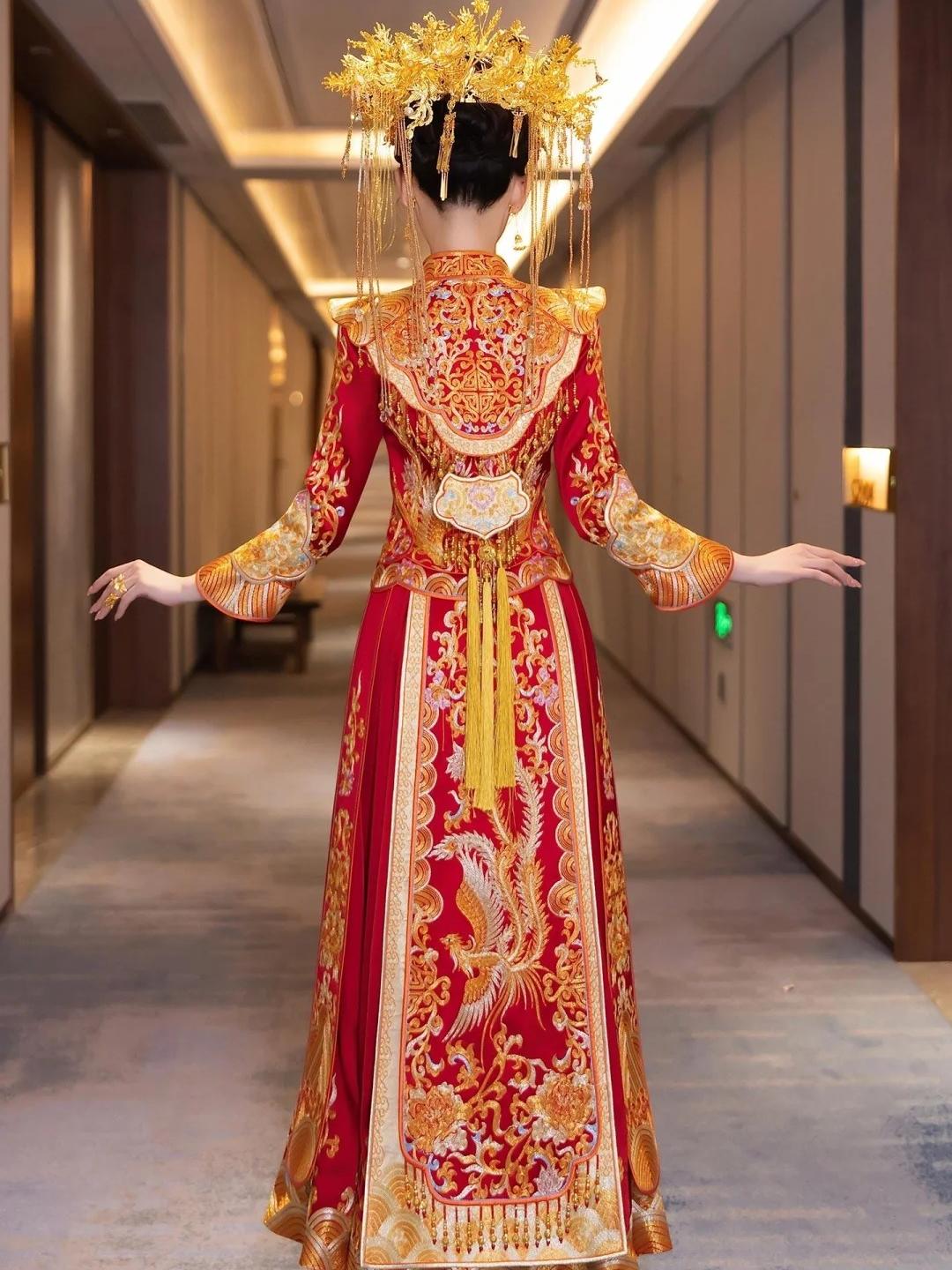 红金刺绣的中式嫁衣