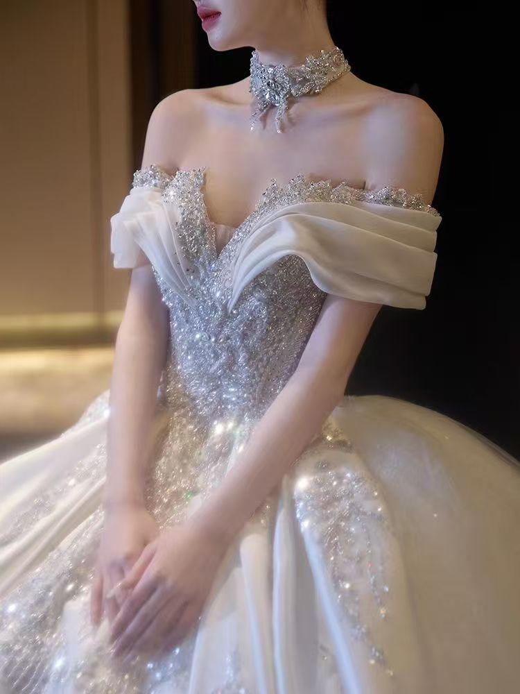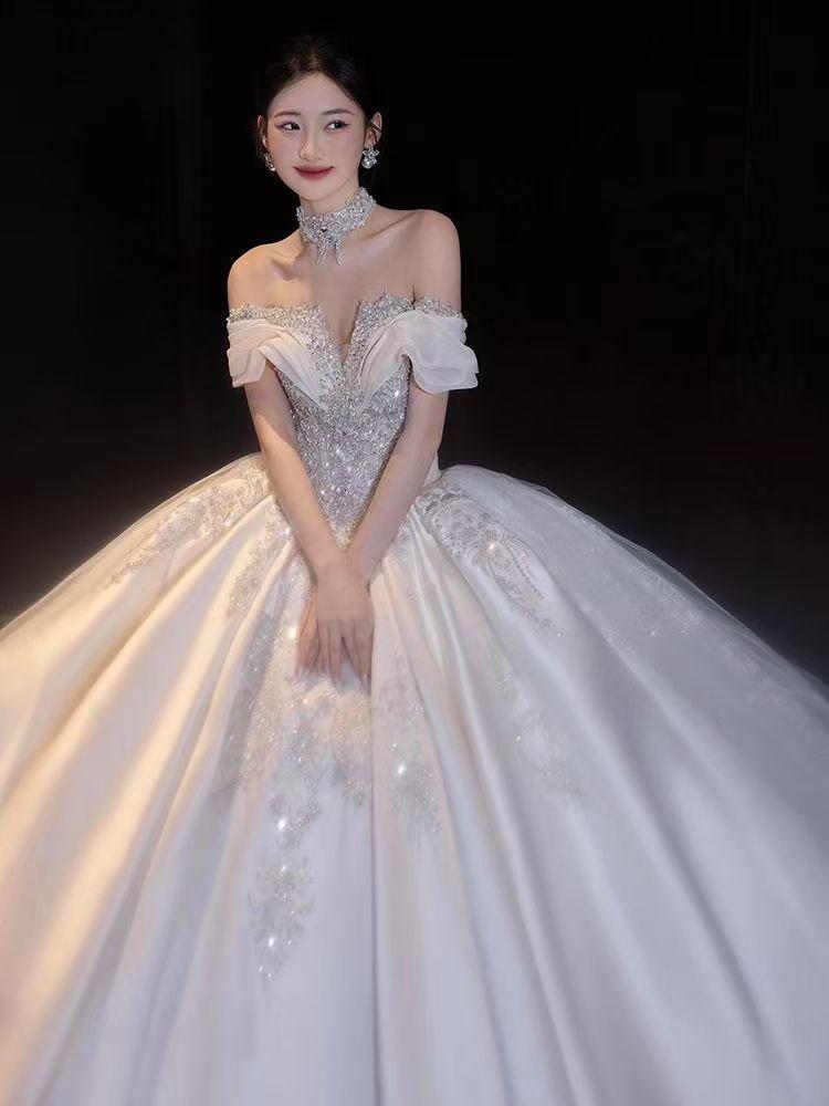 高级感缎面钉珠婚纱