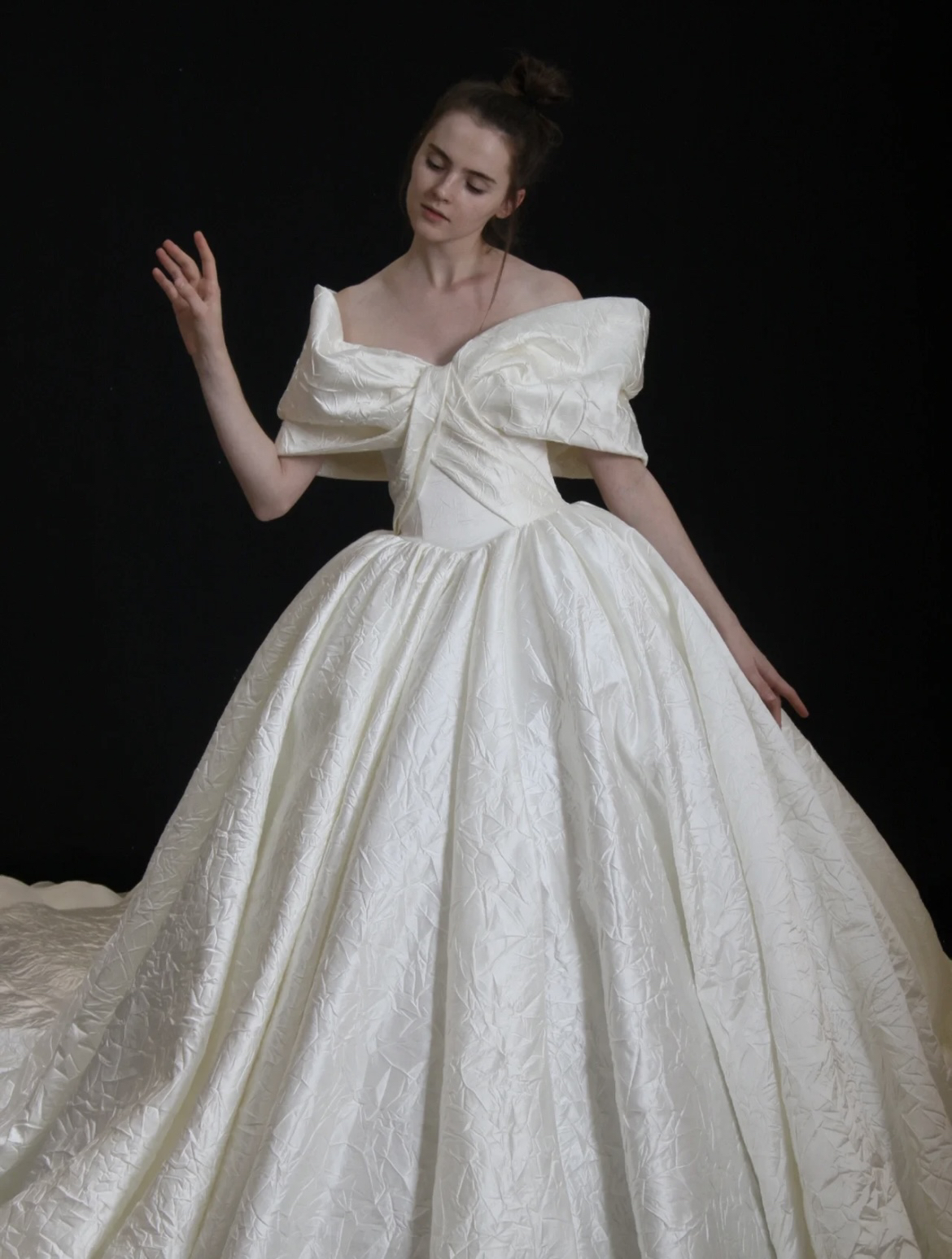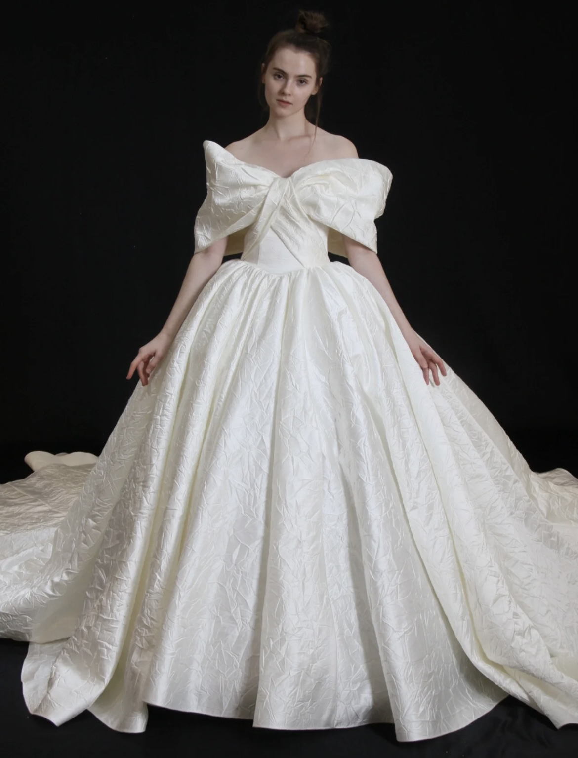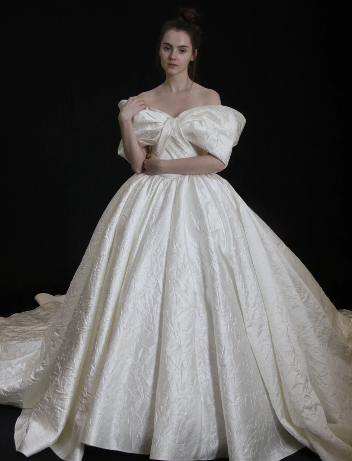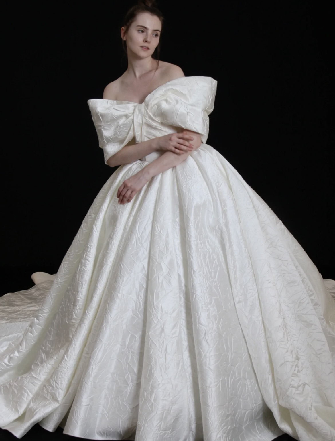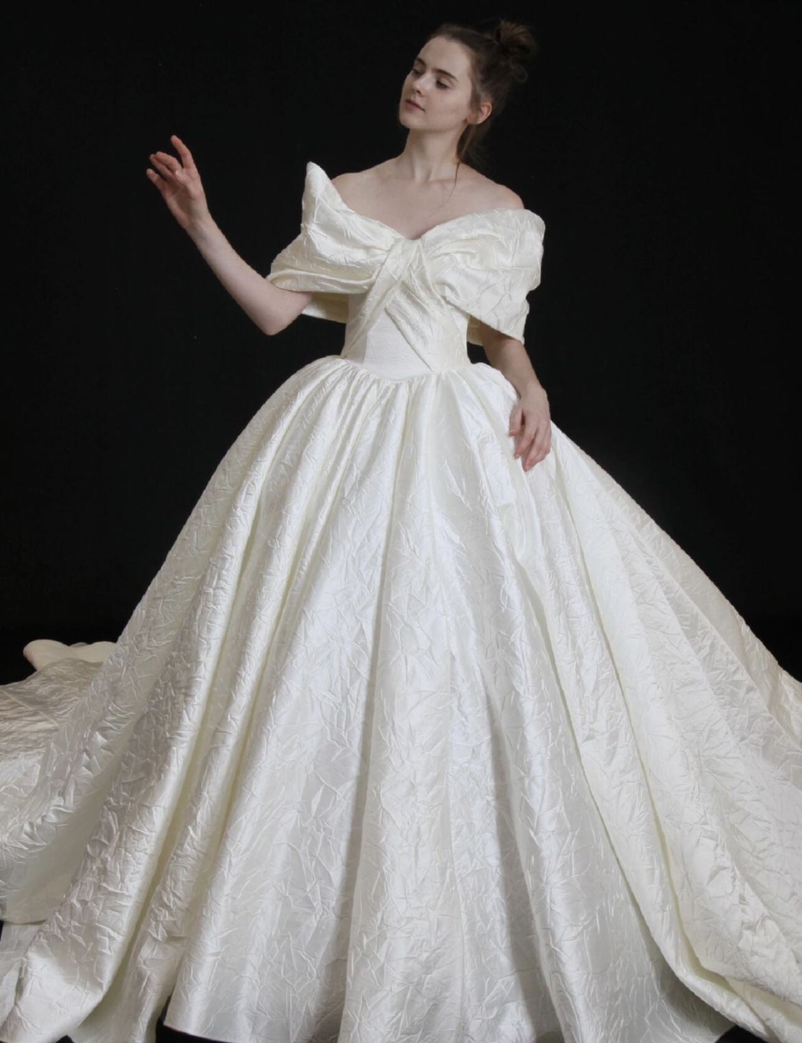 【囍沐·主纱】奢华缎面一字肩主纱