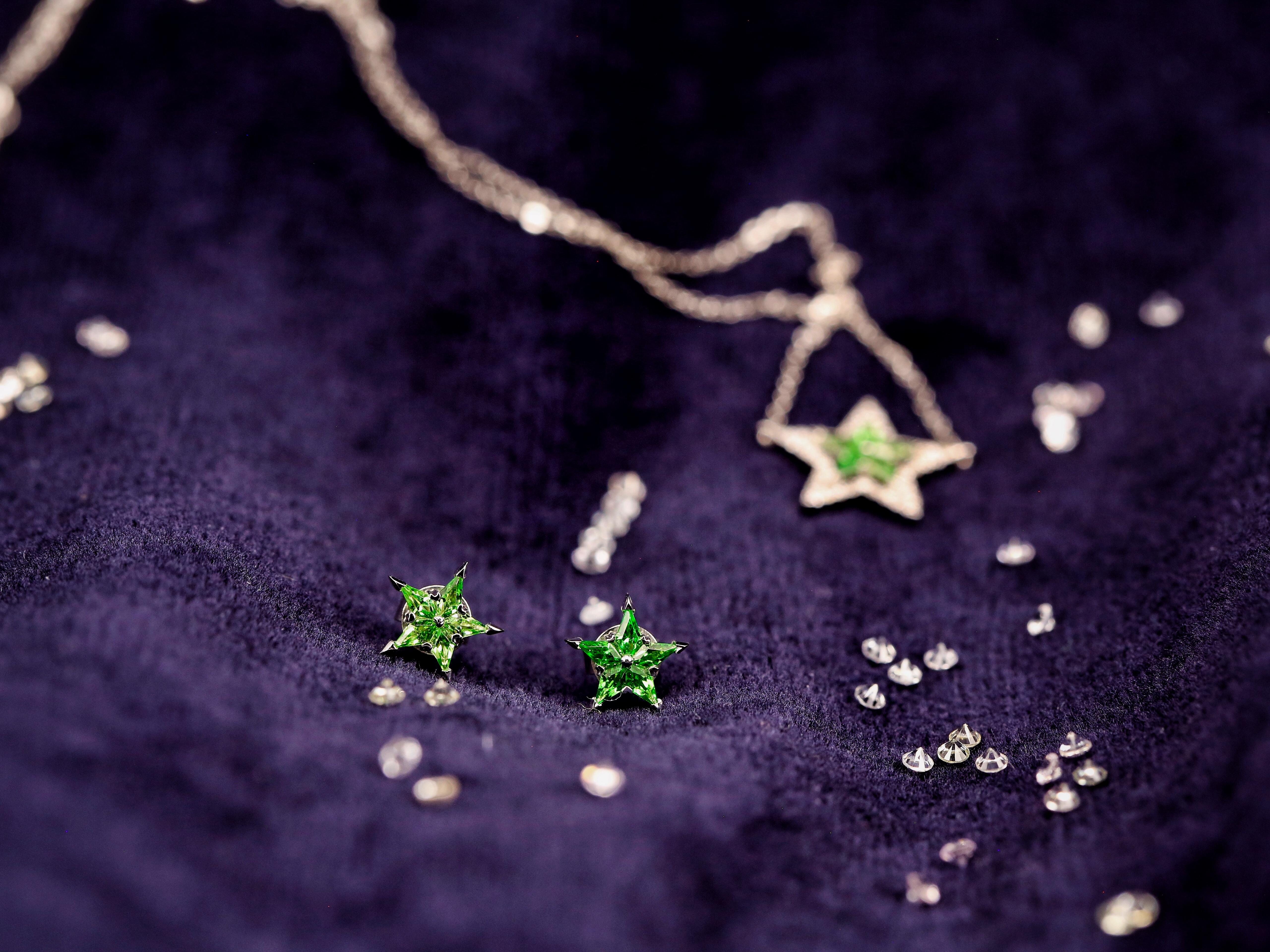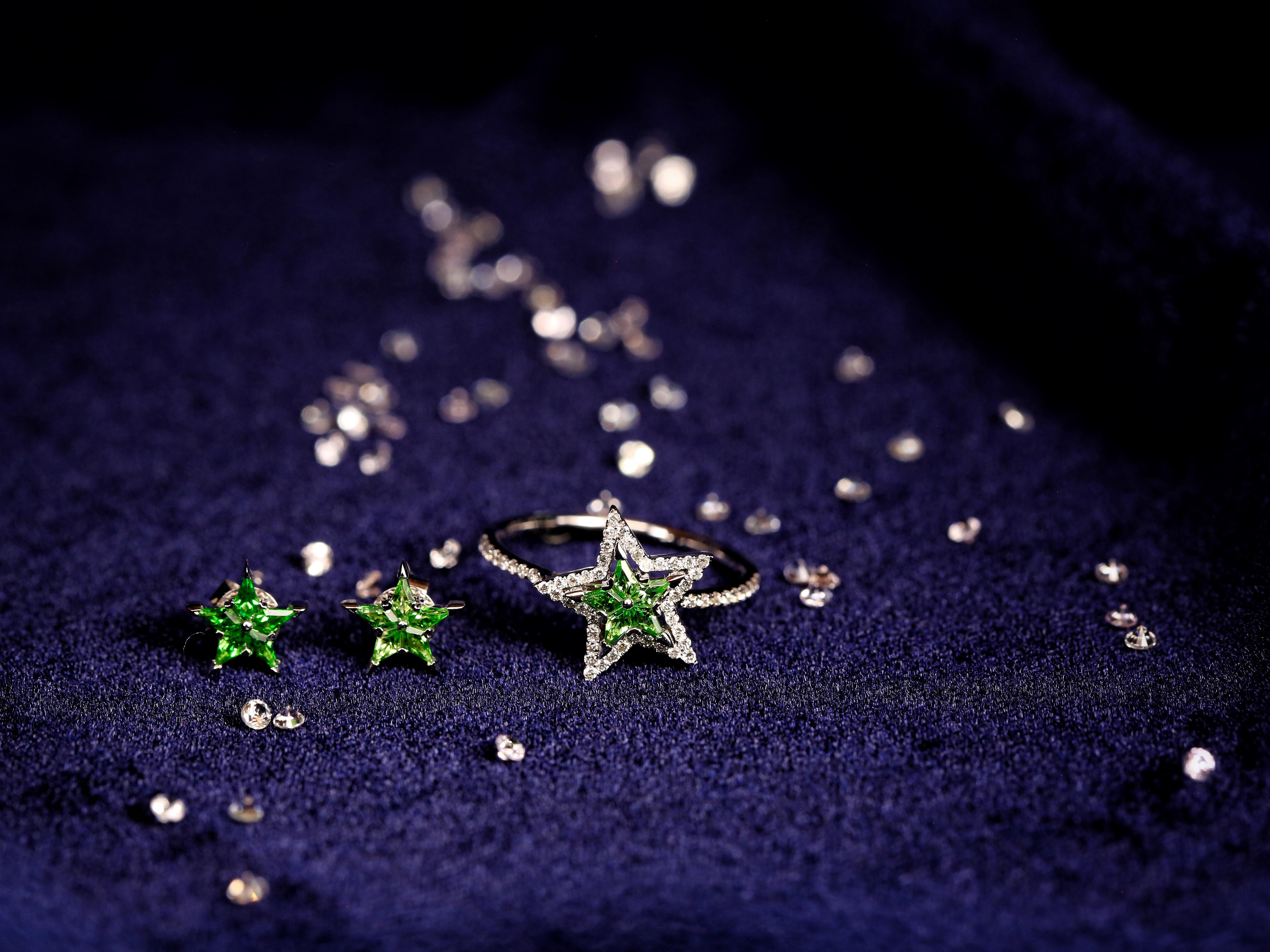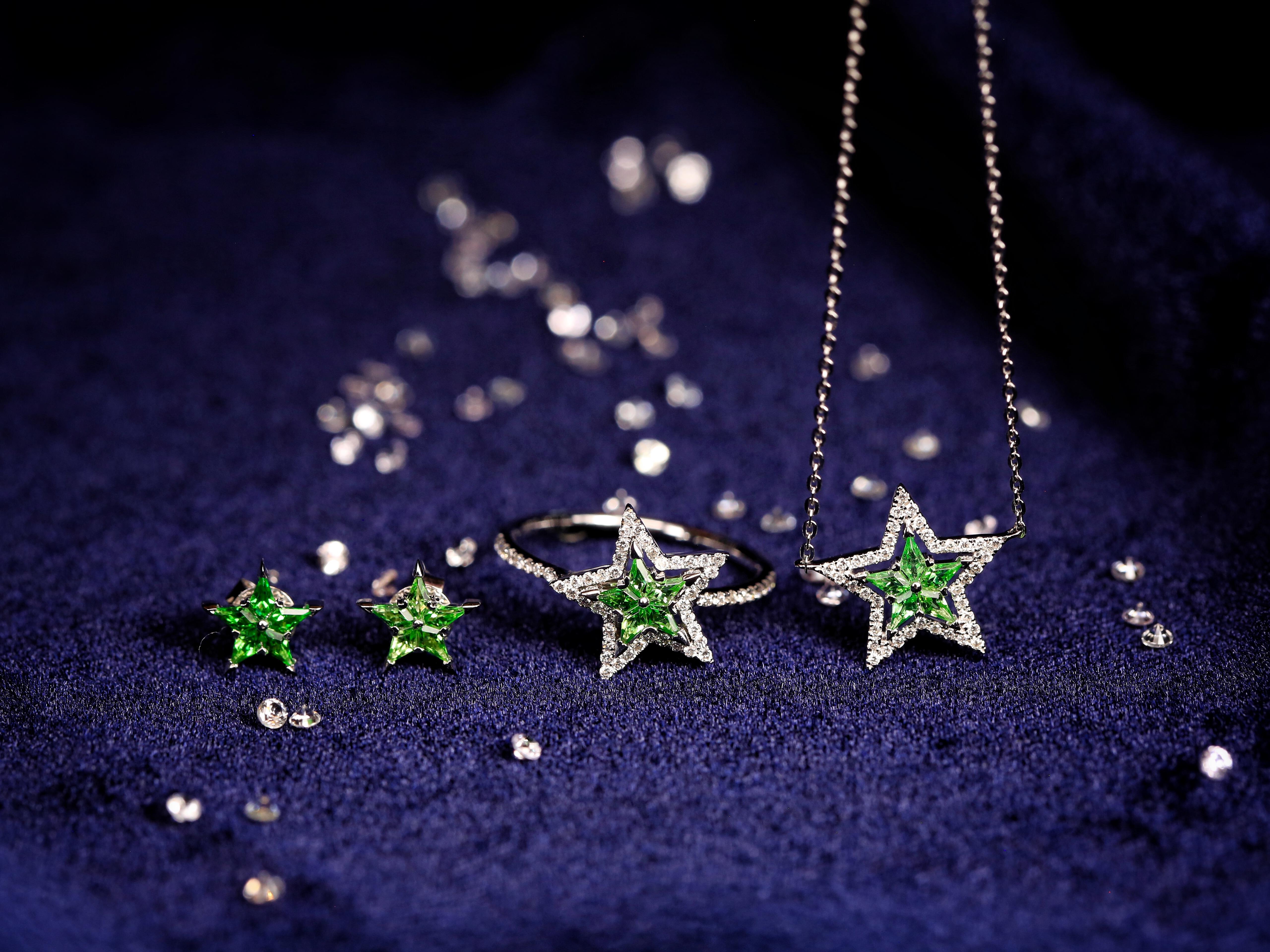 Aurora(欧若拉)星星系列沙弗莱宝石<br />超值大优惠:每一系列包括吊坠、戒指、耳环<br /> 总价10220元,整套卖9198元
