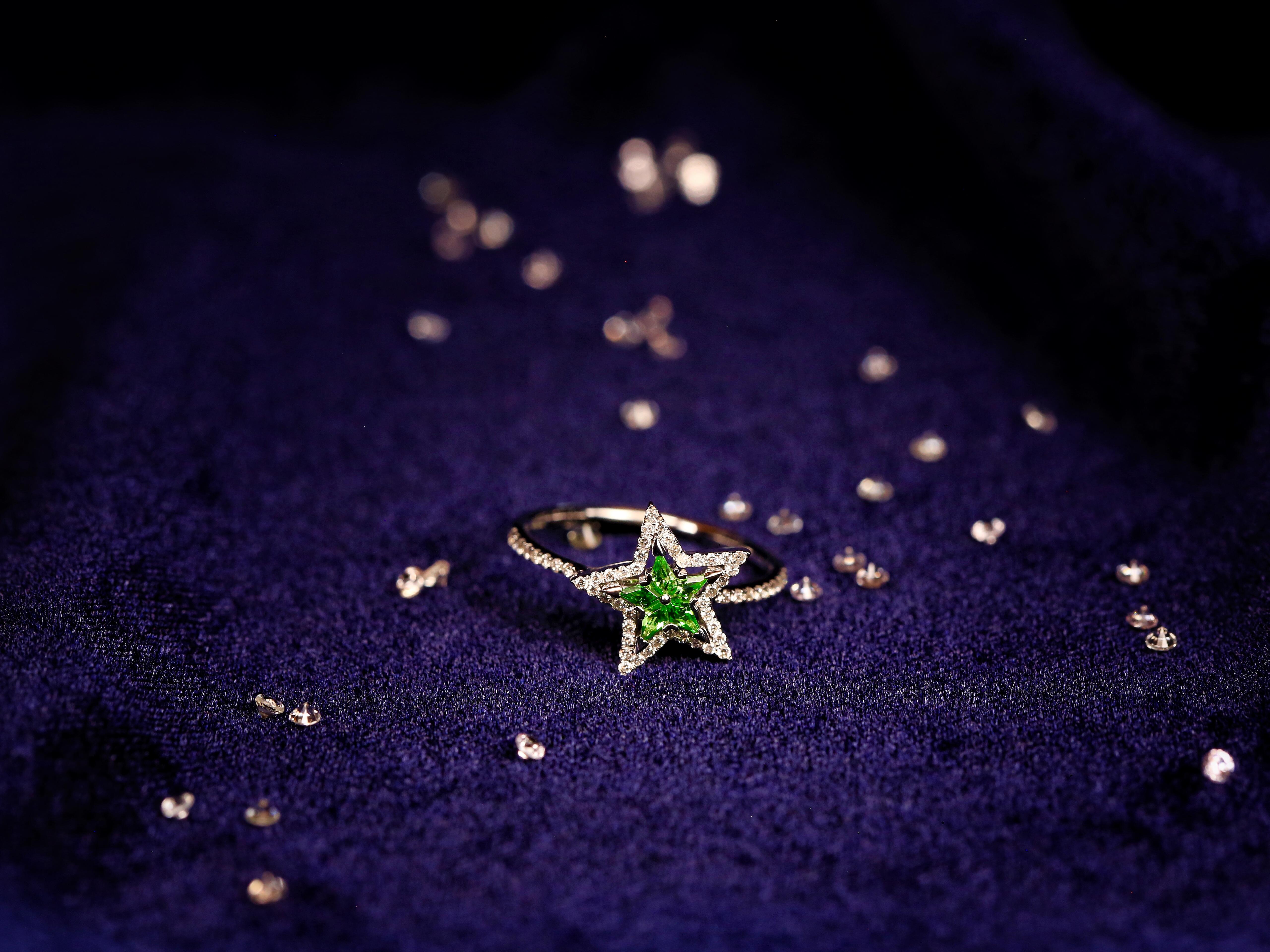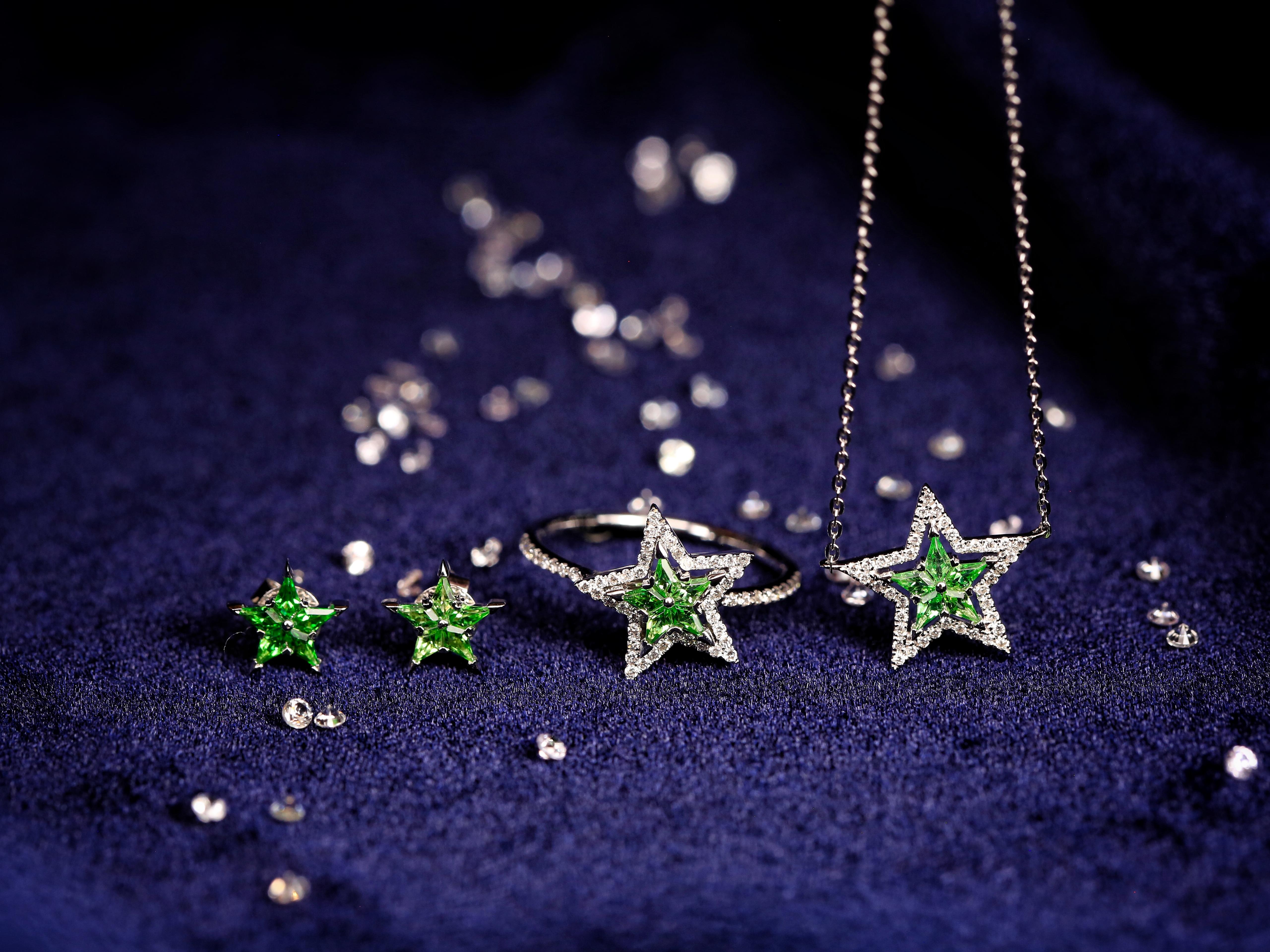 Aurora(欧若拉)星星系列沙弗莱宝石<br />超值大优惠:每一系列包括吊坠、戒指、耳环<br /> 总价10220元,整套卖9198元