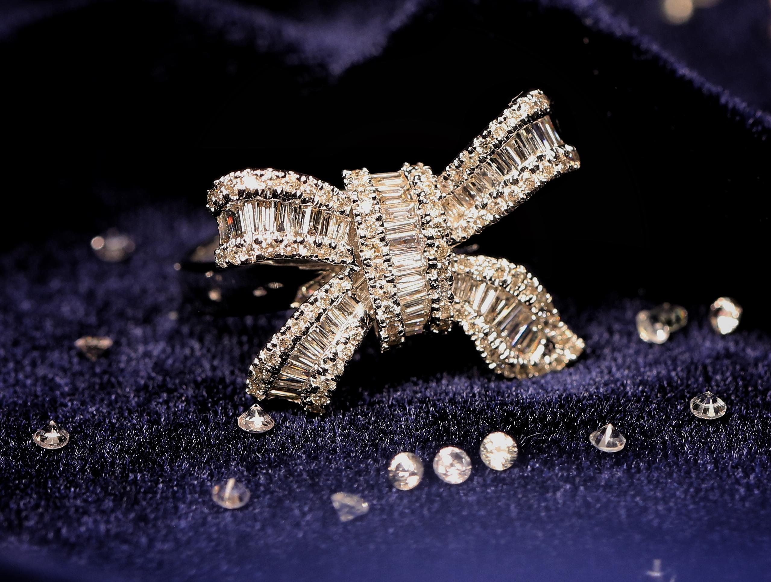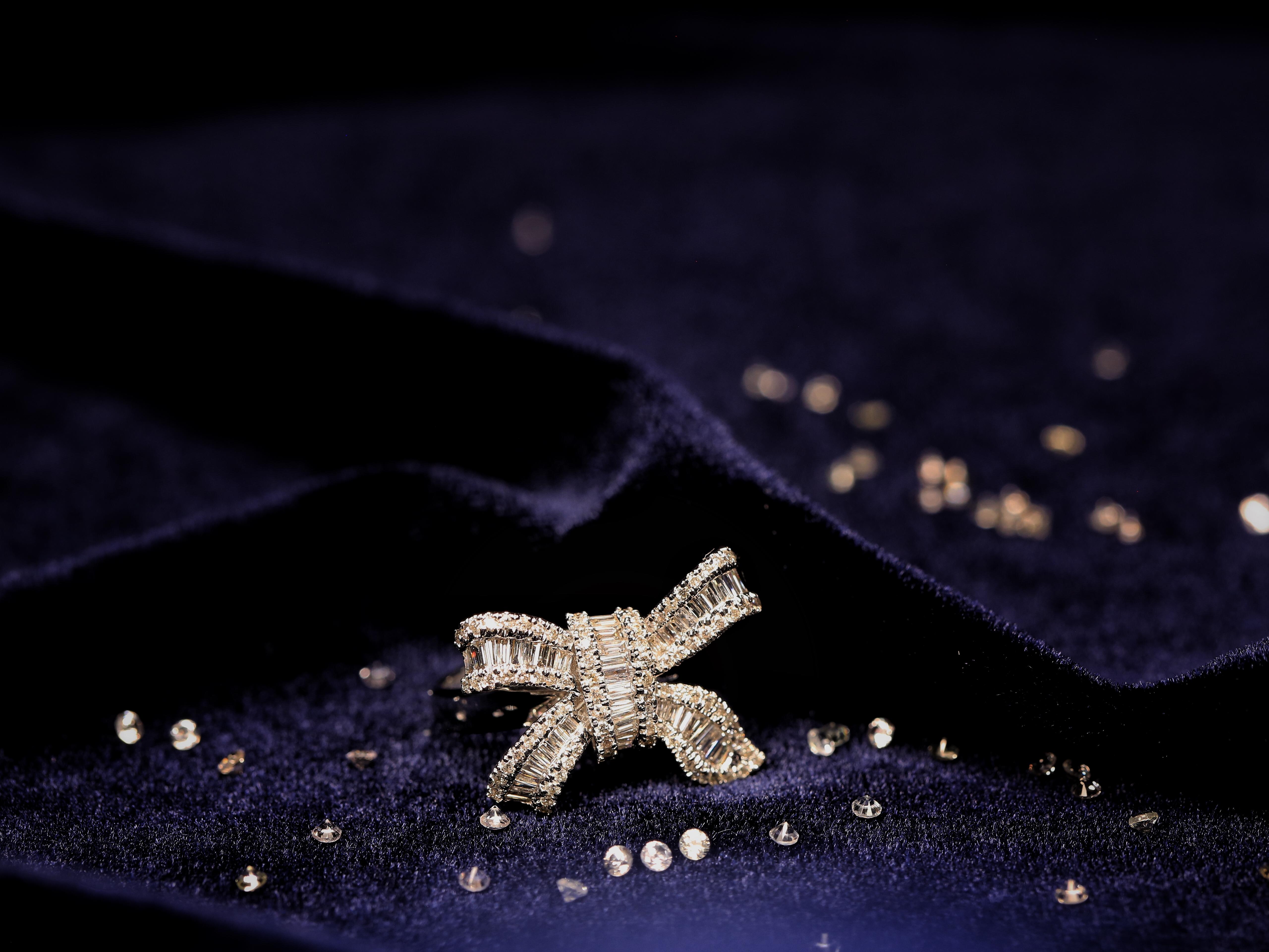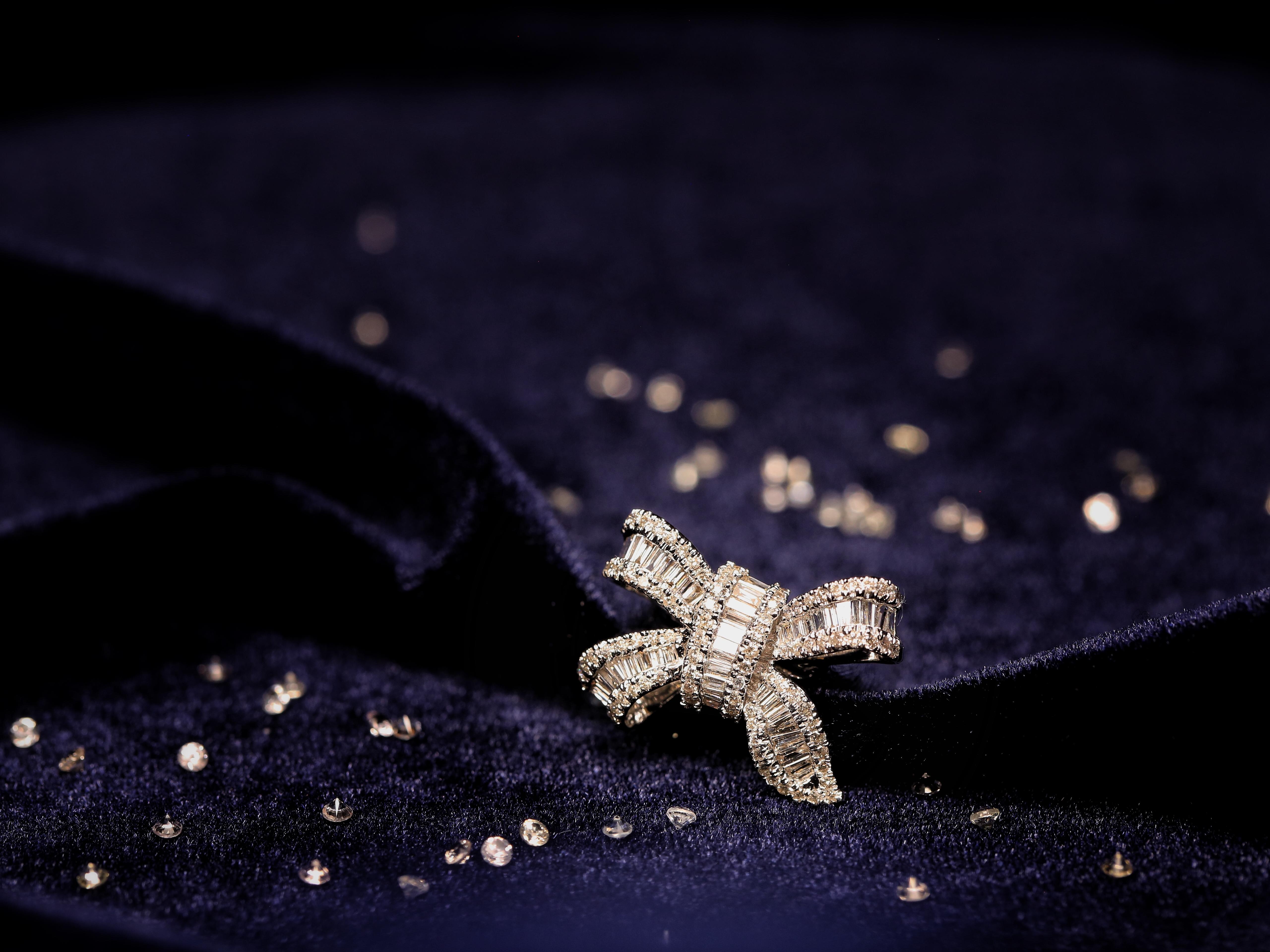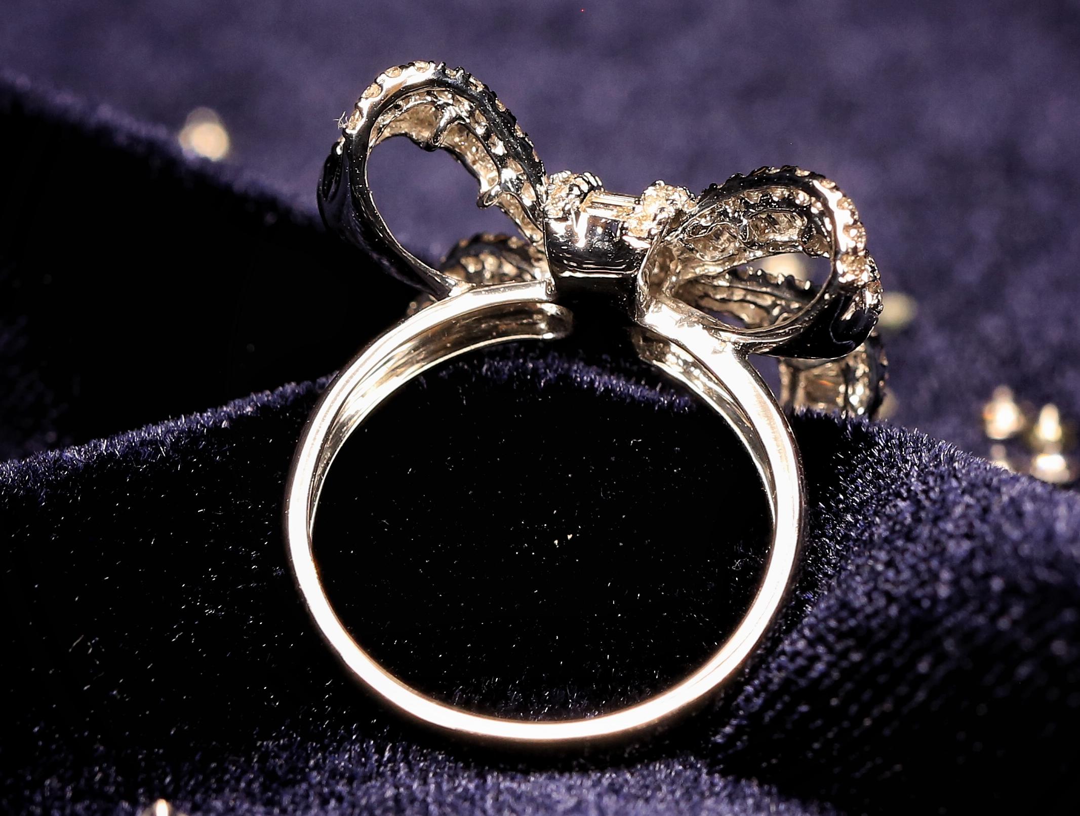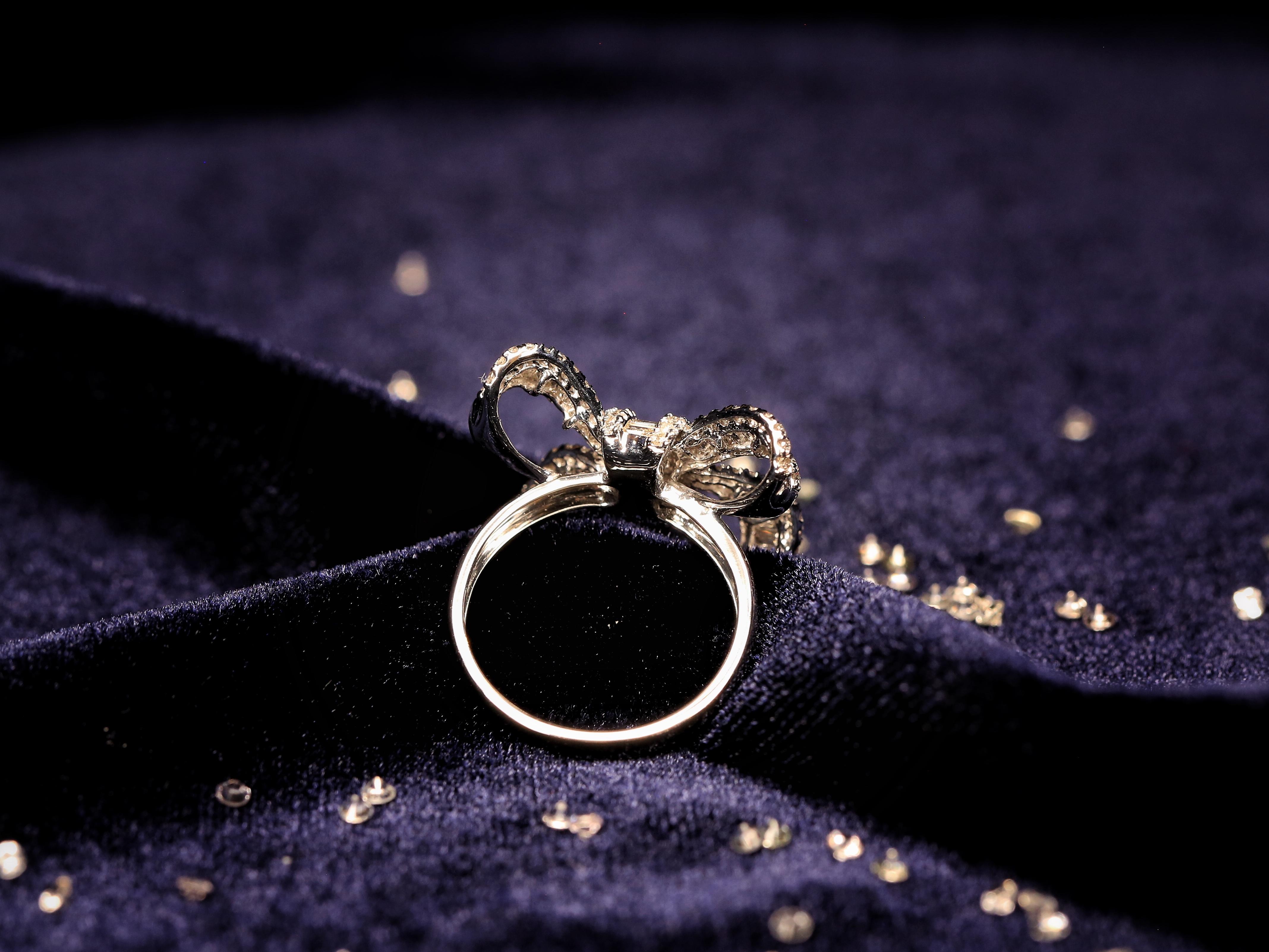 【gift】蝴蝶结钻石戒指-18k白金<br />一直以来,蝴蝶结似乎总是与缎带和礼品包装盒“脱不了干系”。<br />蝴蝶结作为甜美与浪漫的象征,永远是女孩们最倾心的图案。带有蝴蝶结元素的珠宝优雅且富有活力,充满了少女情怀。如今在设计师的手中,经典华丽的蝴蝶结造型变得简约低调,让硬材质的珠宝更加温柔细腻,倍感年轻的同时不失气场,实在是值得入手的必备款。如此减龄的蝴蝶结钻石戒指,你心动了吗?