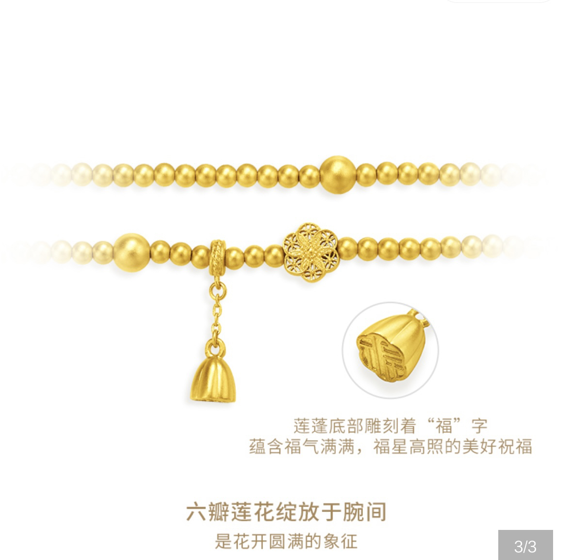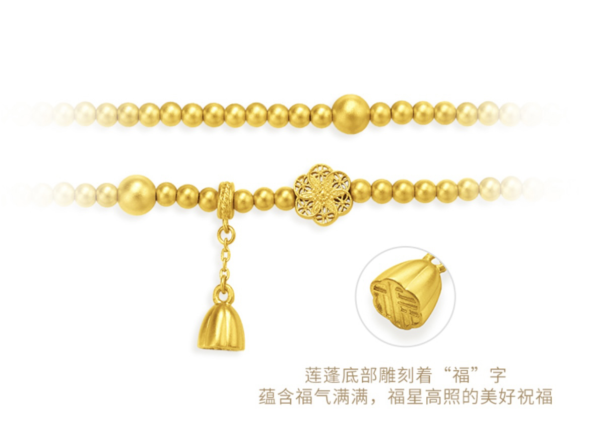 周大福藏蕴传承系列莲蓬福字福满莲华手链 婚戒首饰