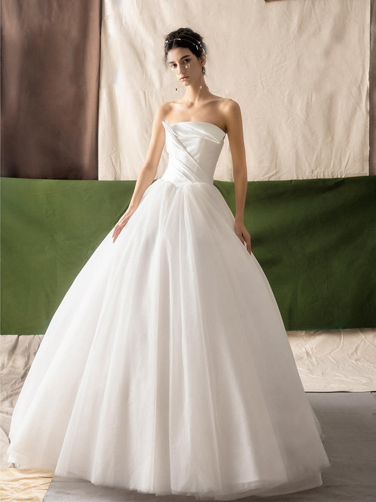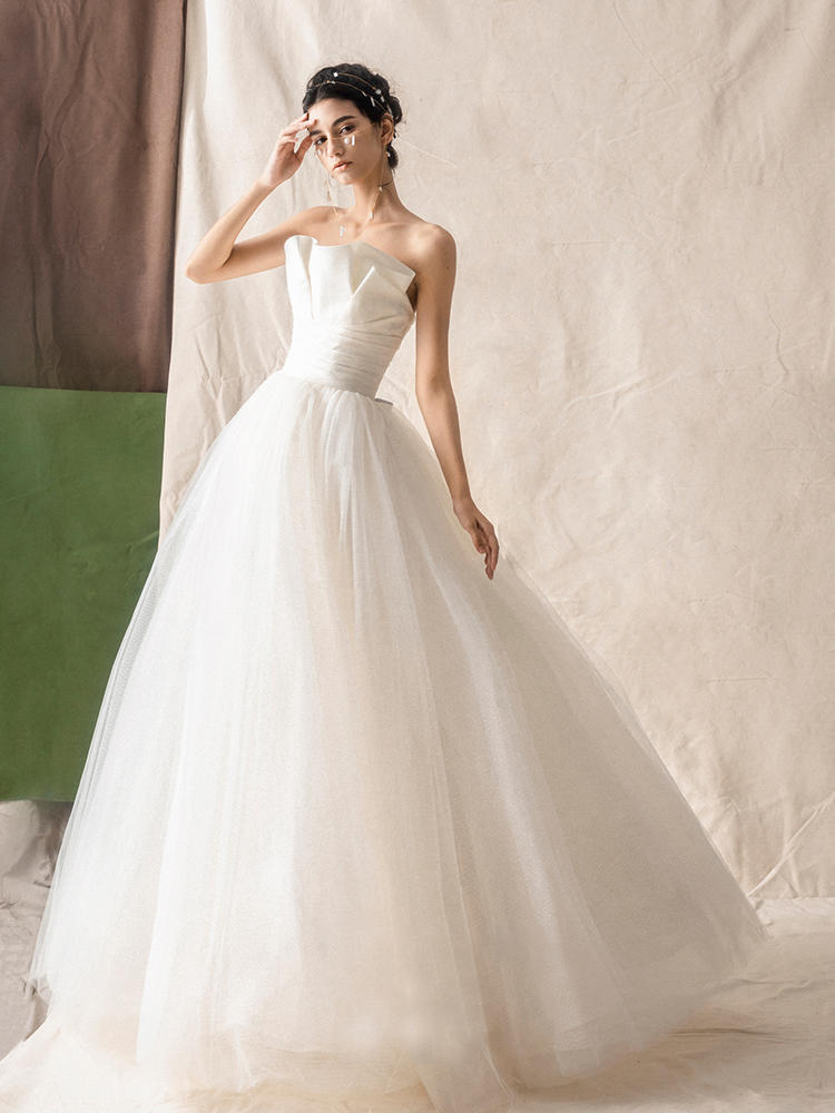 设计师品牌 宽褶抹胸束腰蓬蓬纱