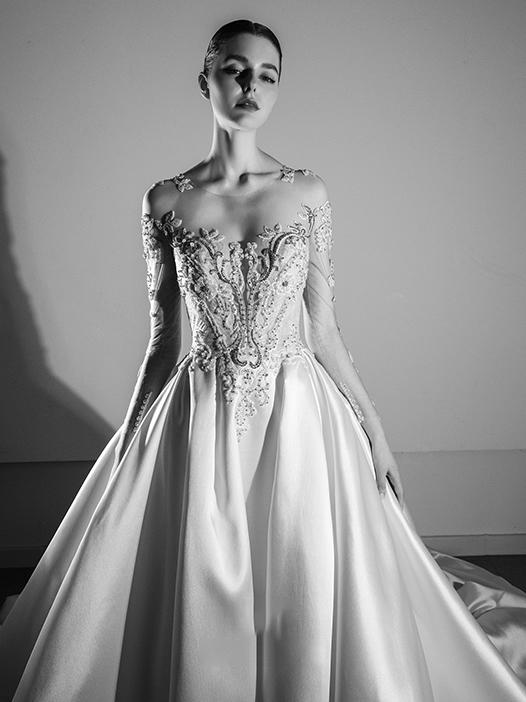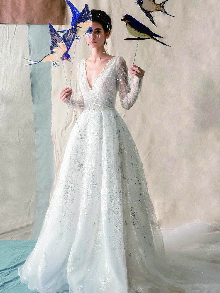 以色列婚纱品牌长袖亮片蕾丝仙纱