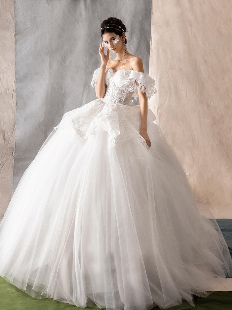 设计师品牌 精致蕾丝卡肩蓬蓬大拖