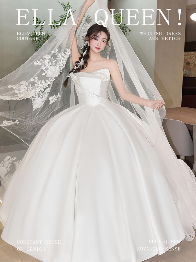 【温柔贵气】缎面抹胸齐地婚纱
