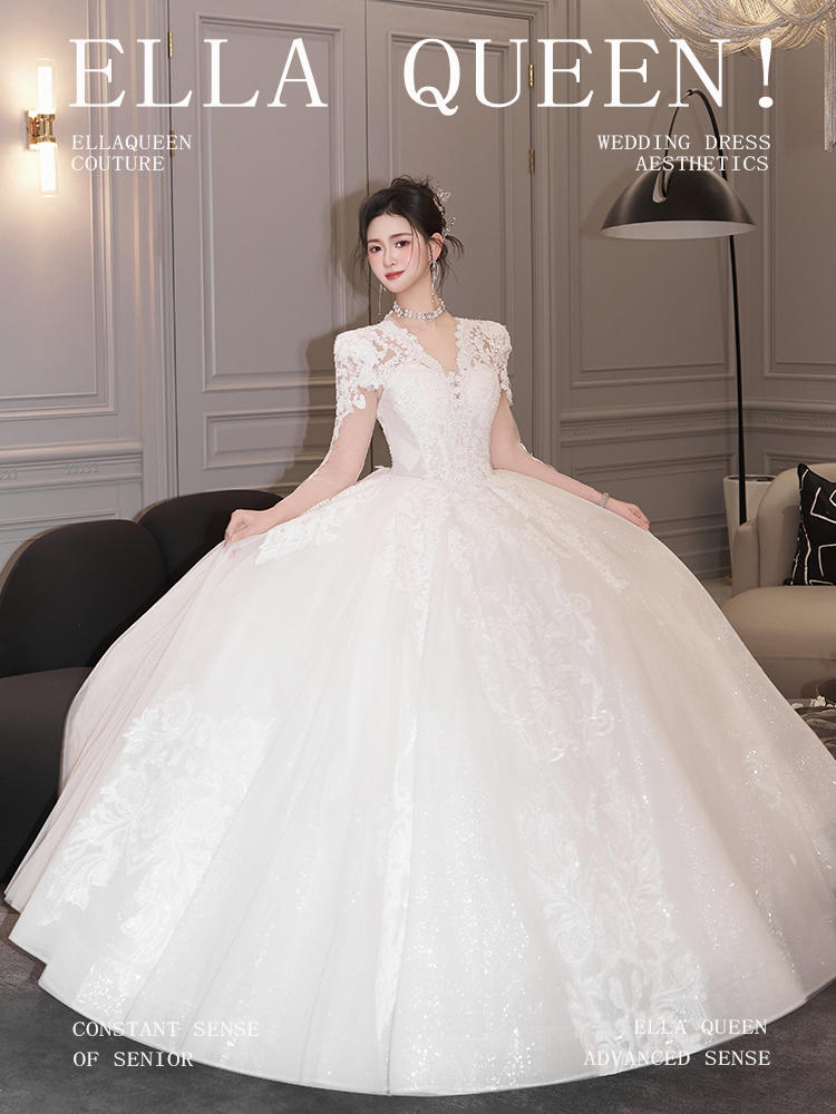 【温柔气质】长袖V领蕾丝婚纱齐地