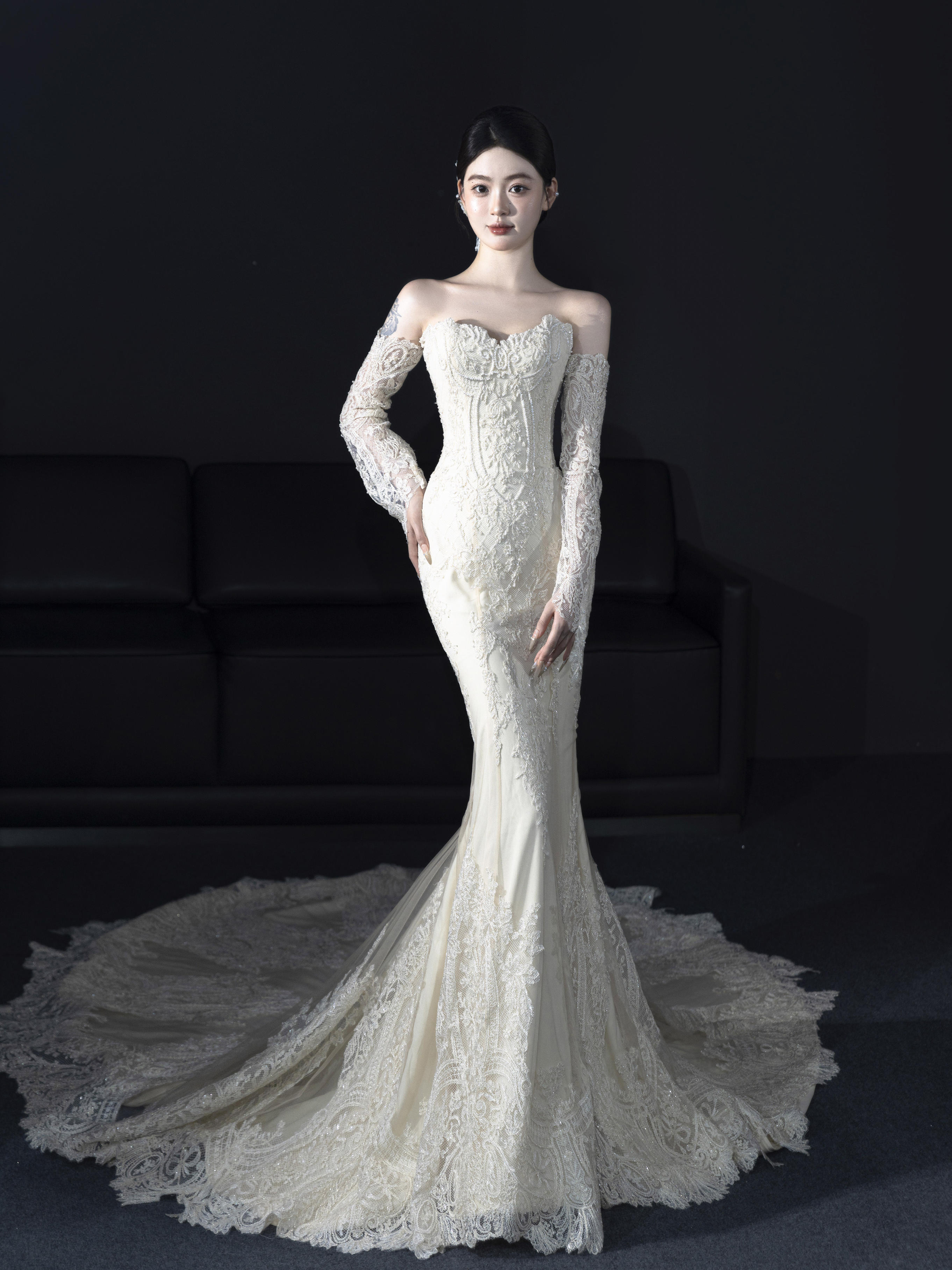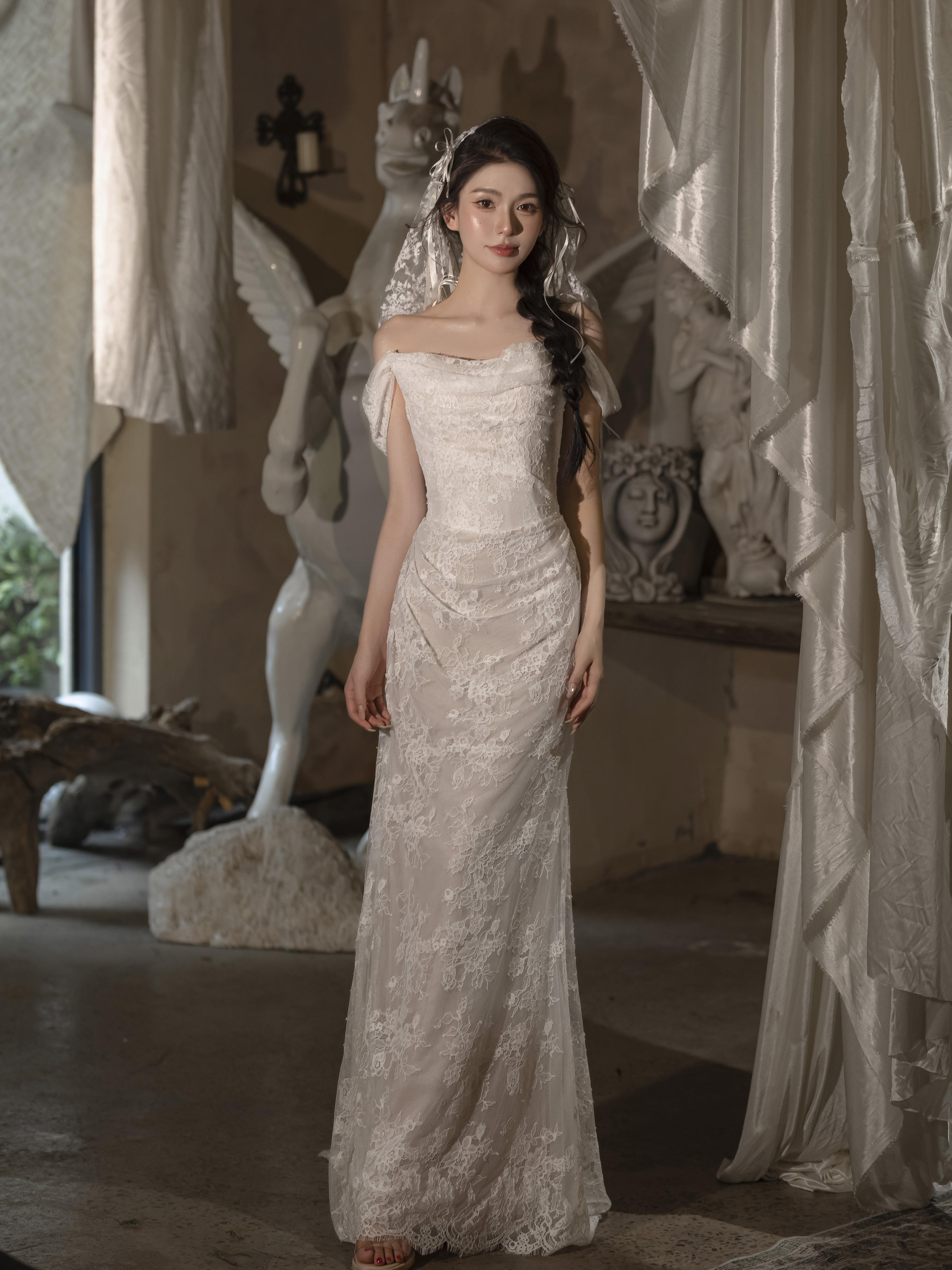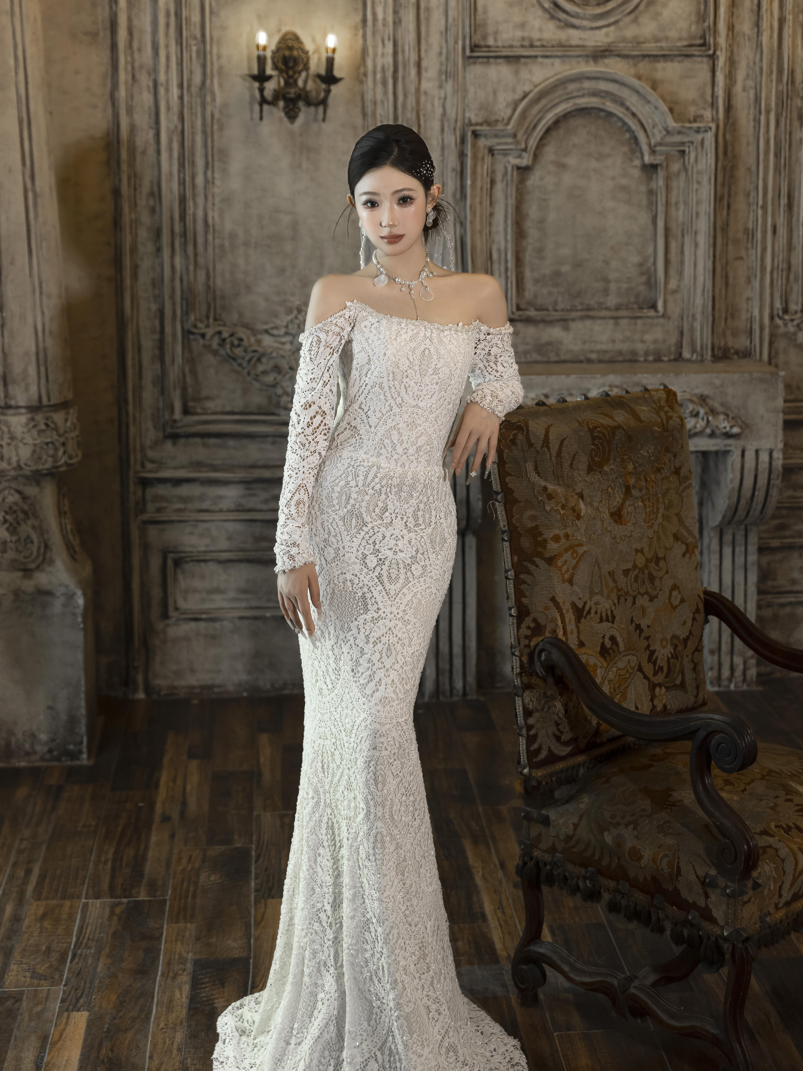 蕾丝一字肩婚纱