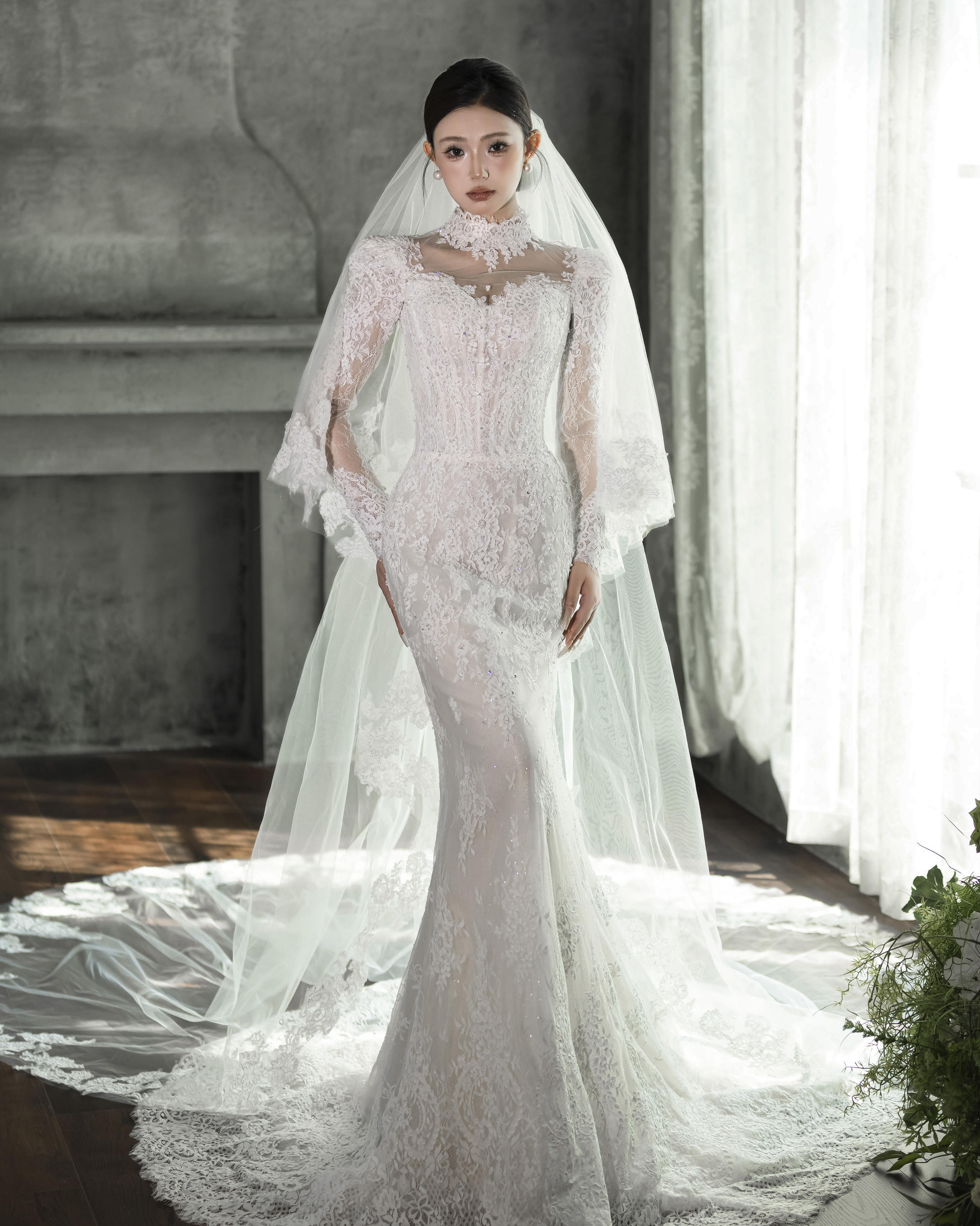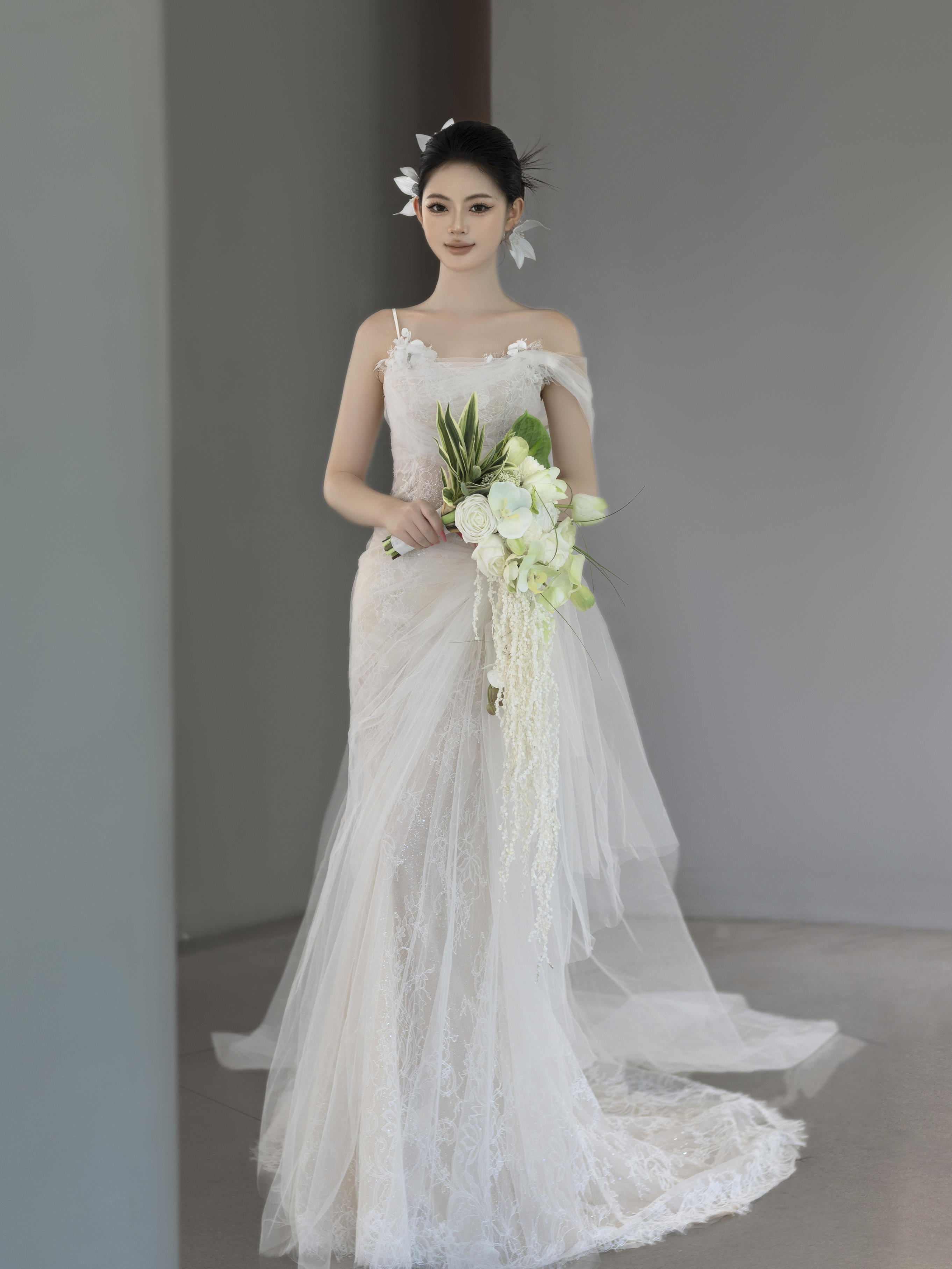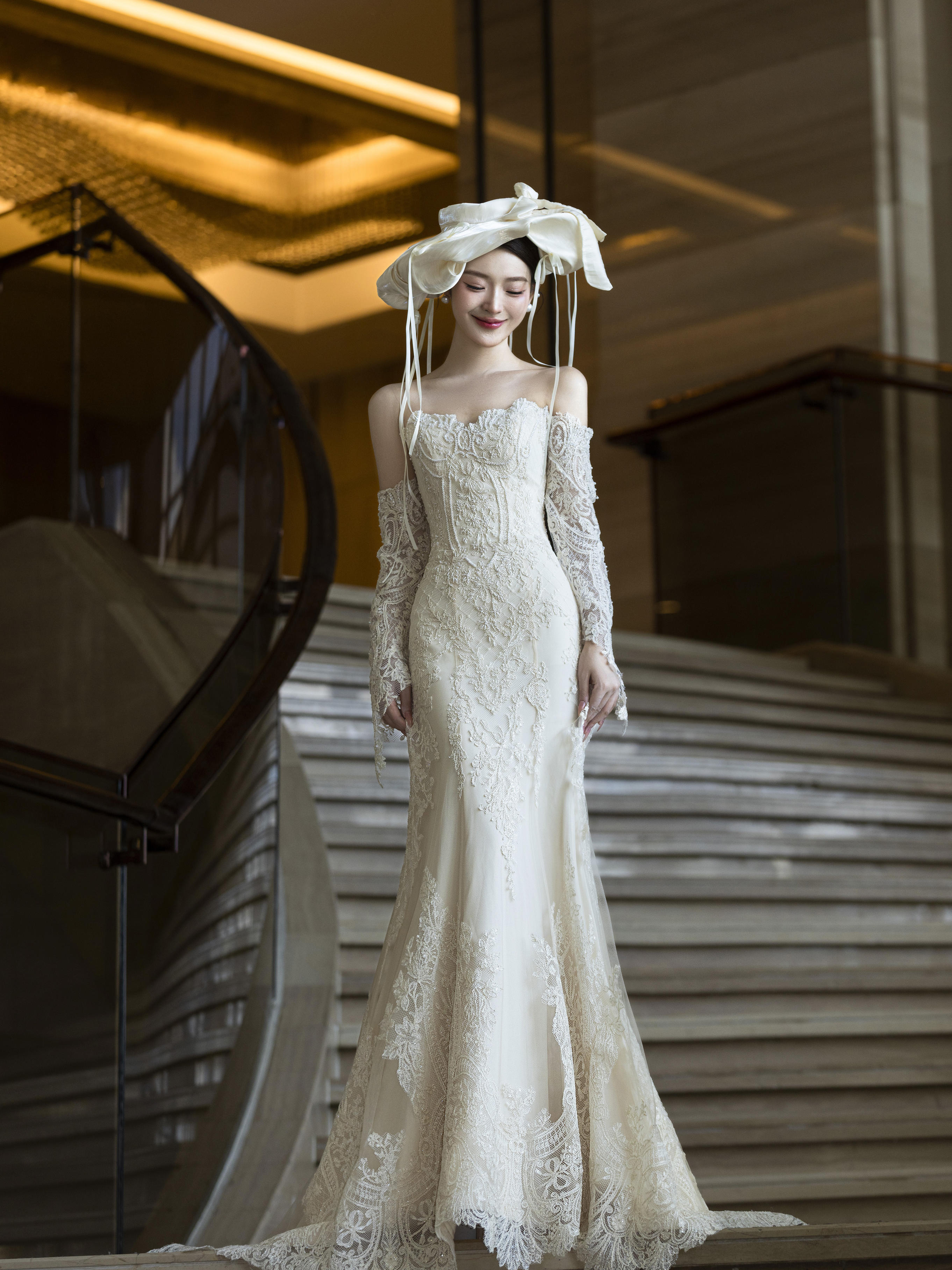 蕾丝一字肩婚纱