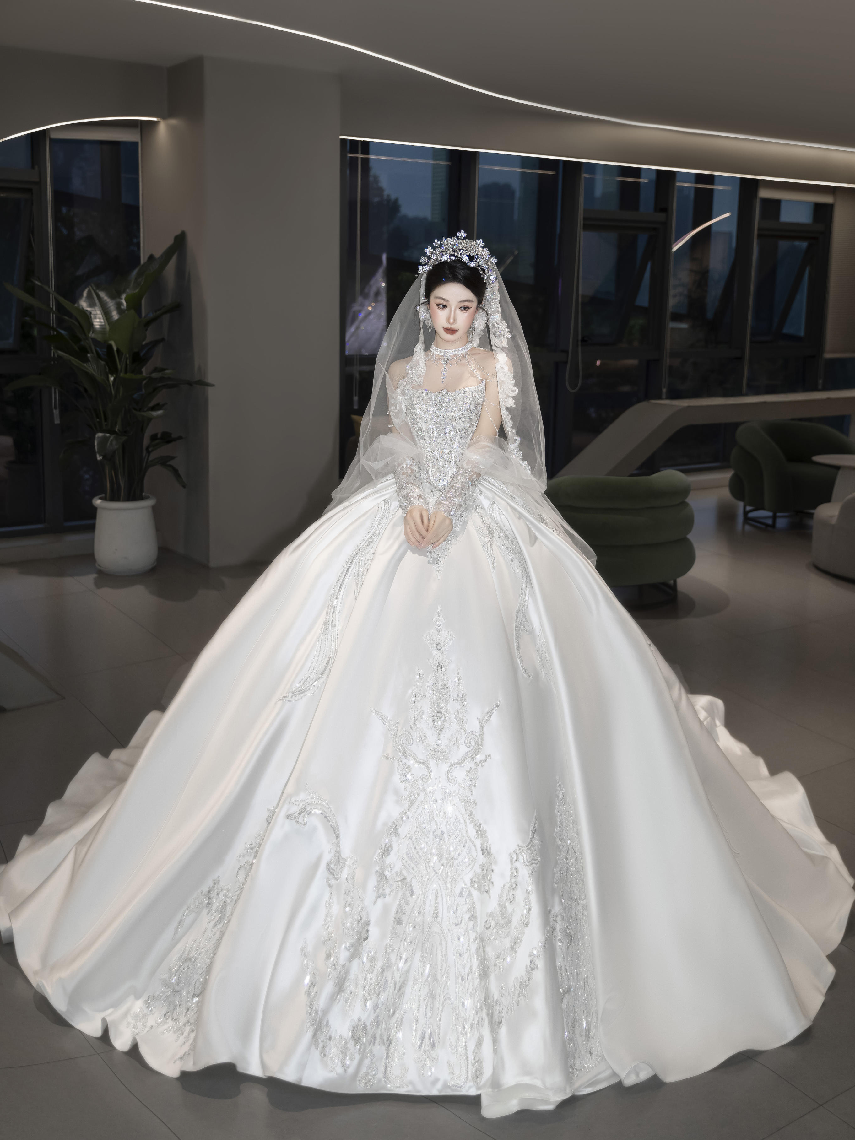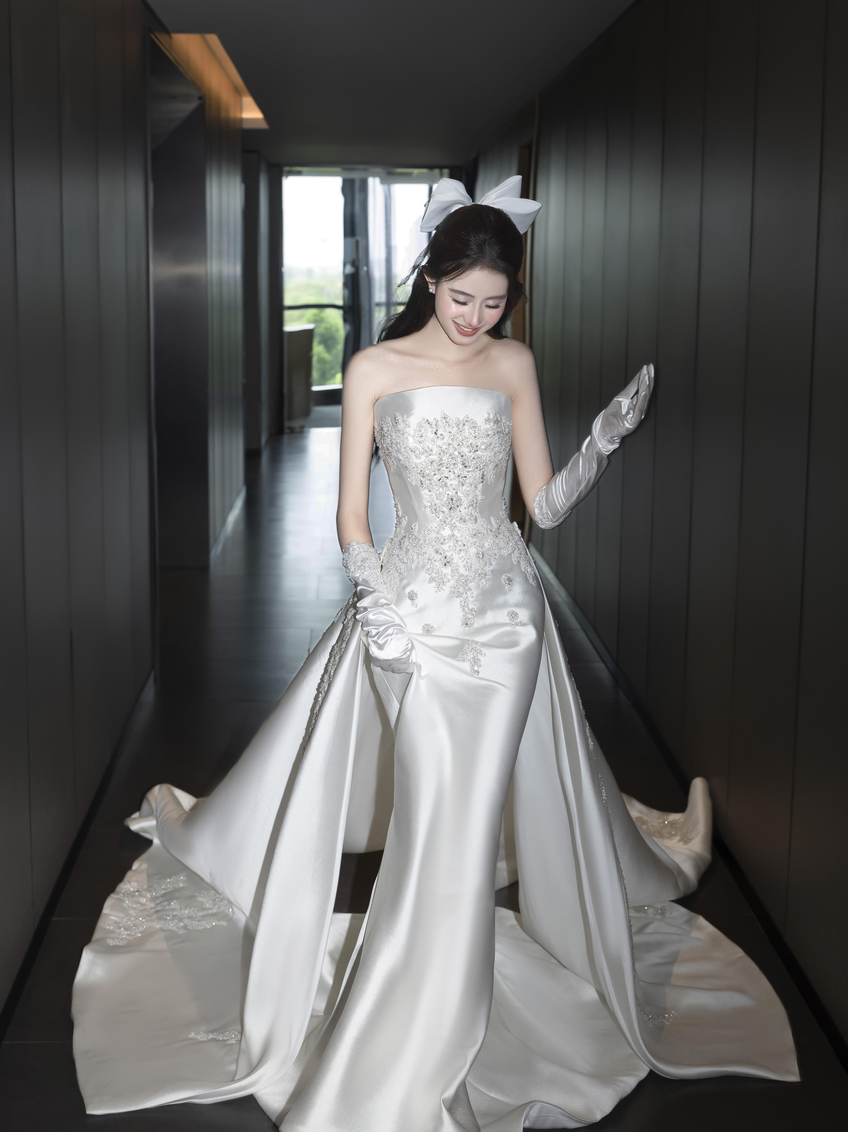 白月光缎面婚纱
