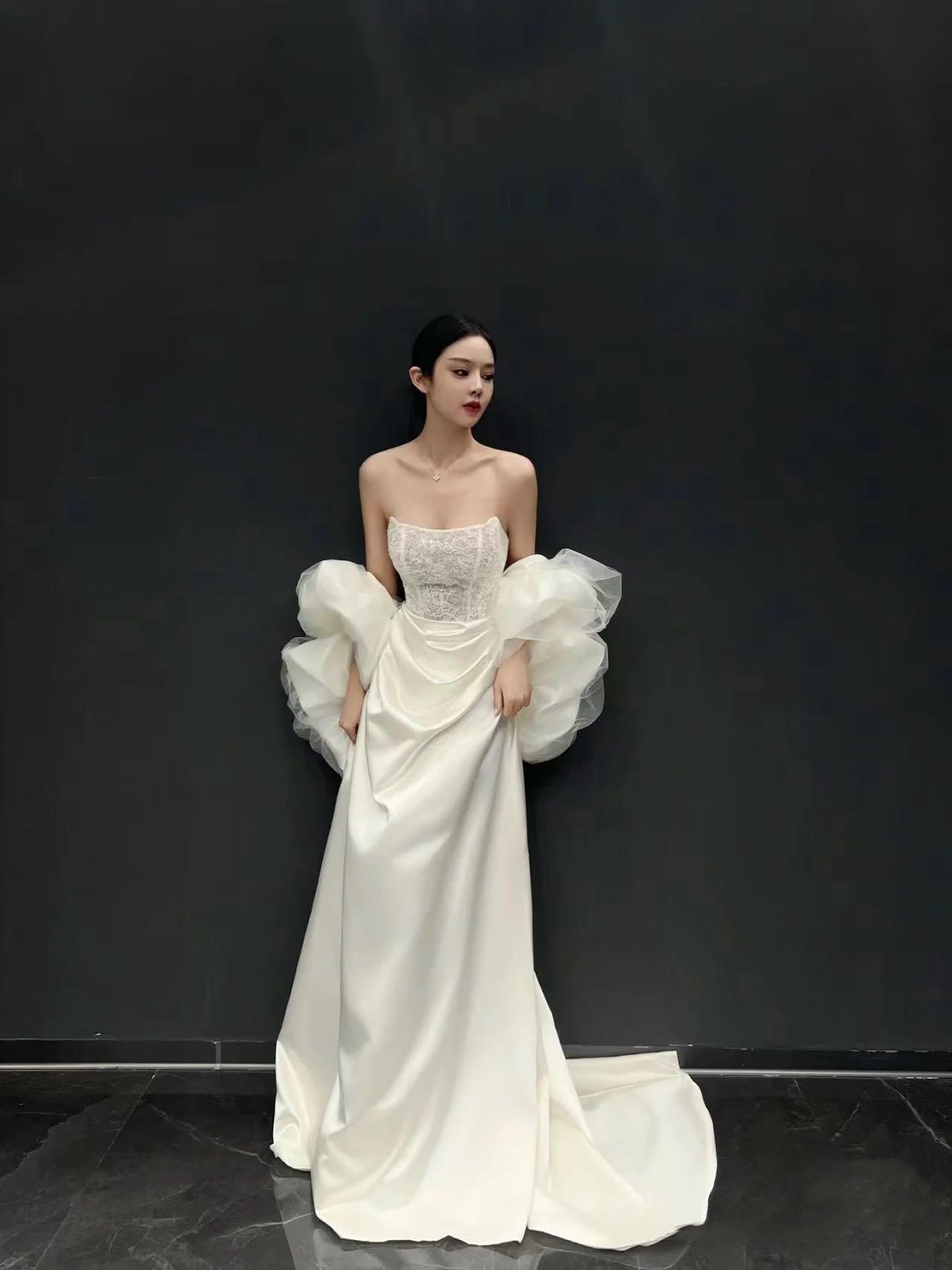 不晚婚纱礼服缎面主纱