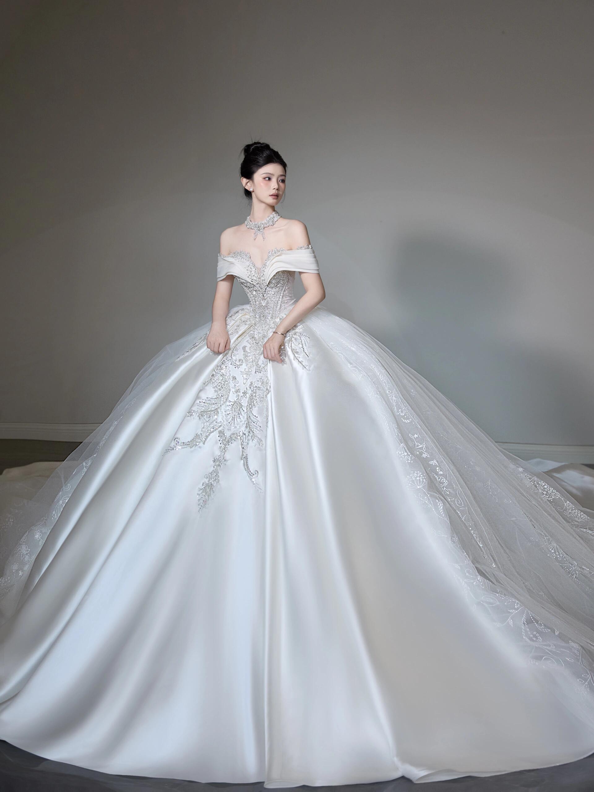 这才是配得上公主的缎面婚纱|