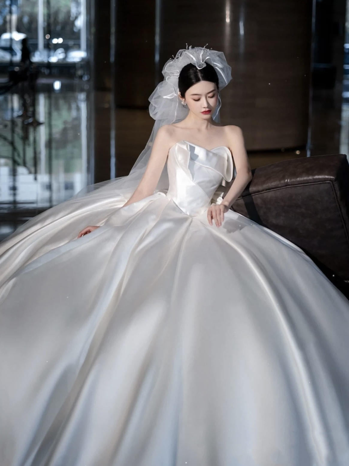 【缀美婚纱】缎面白月光