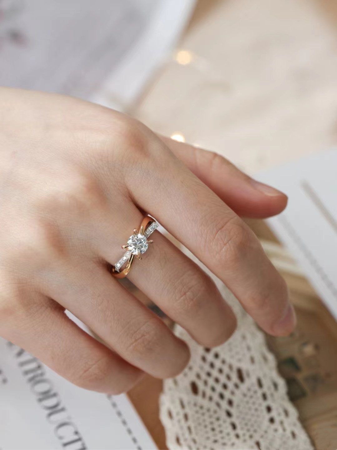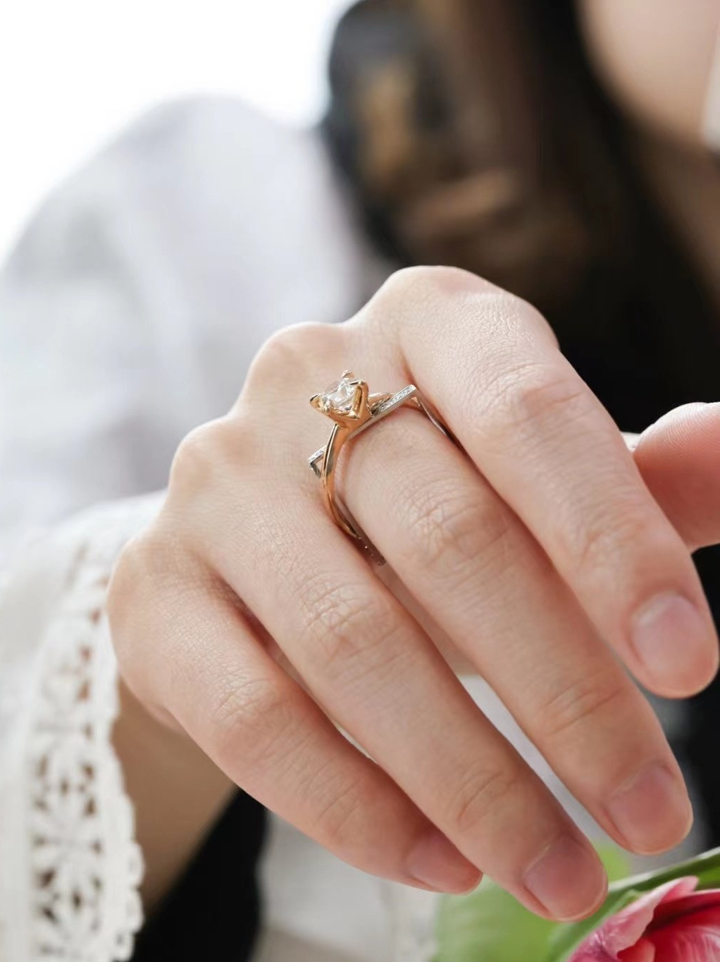 18K仙女双色款钻戒——武汉婚戒定制 |