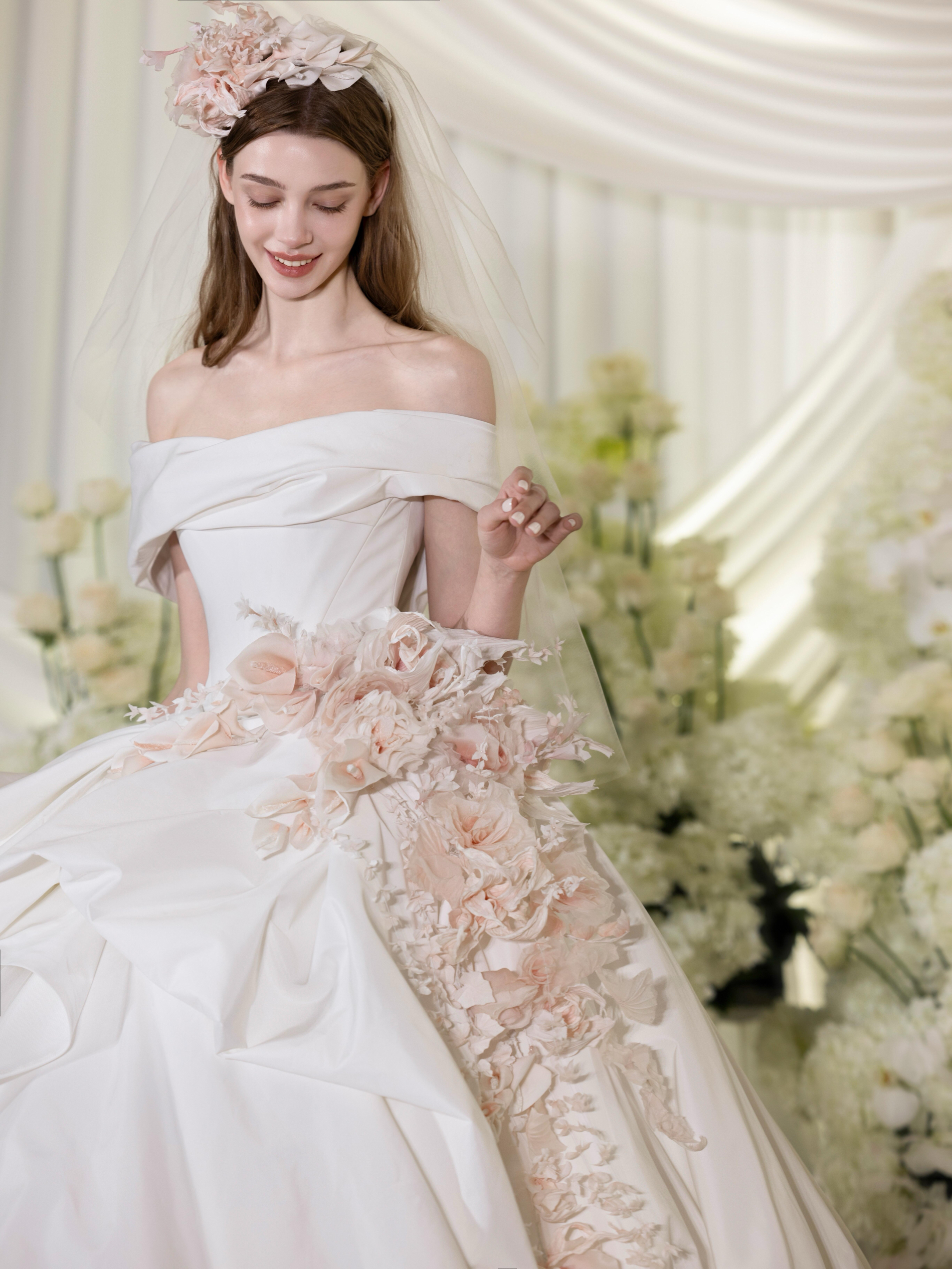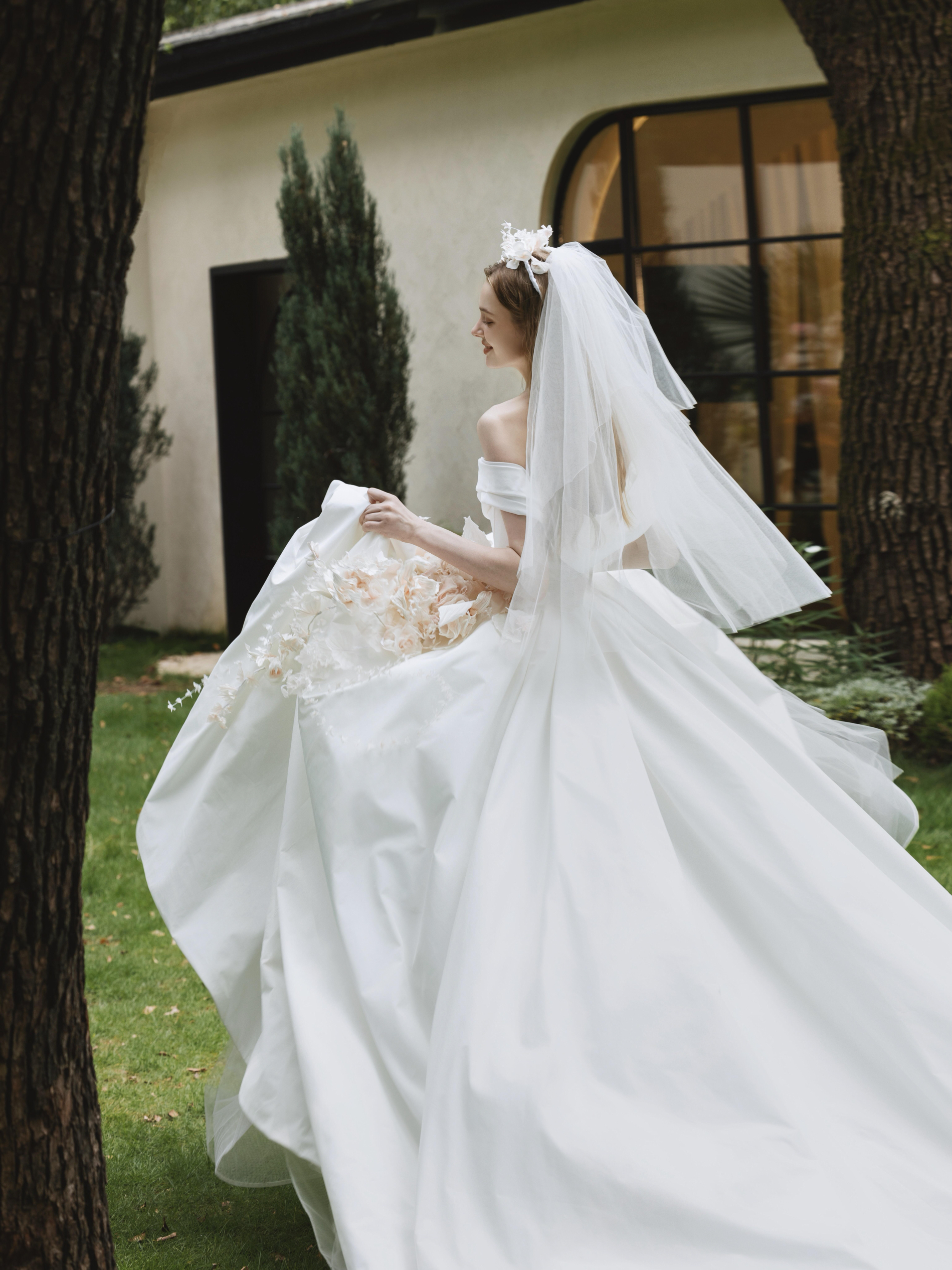 太原租婚纱|户外缎面主纱