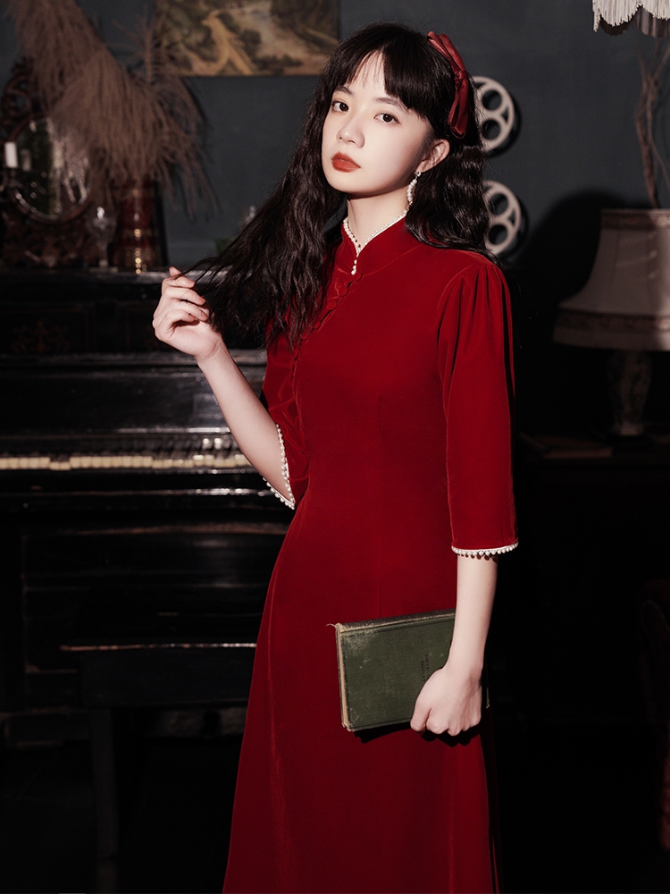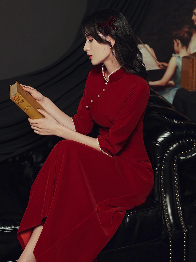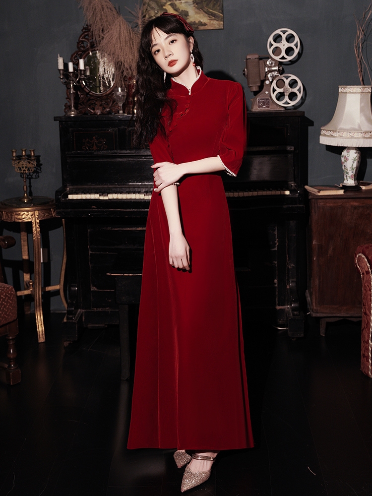 敬酒服新娘旗袍丝绒长袖