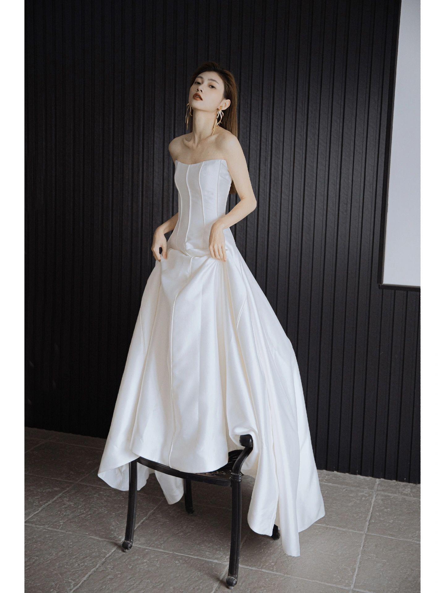 【悦婚纱X郁见】极简流畅缎面婚纱