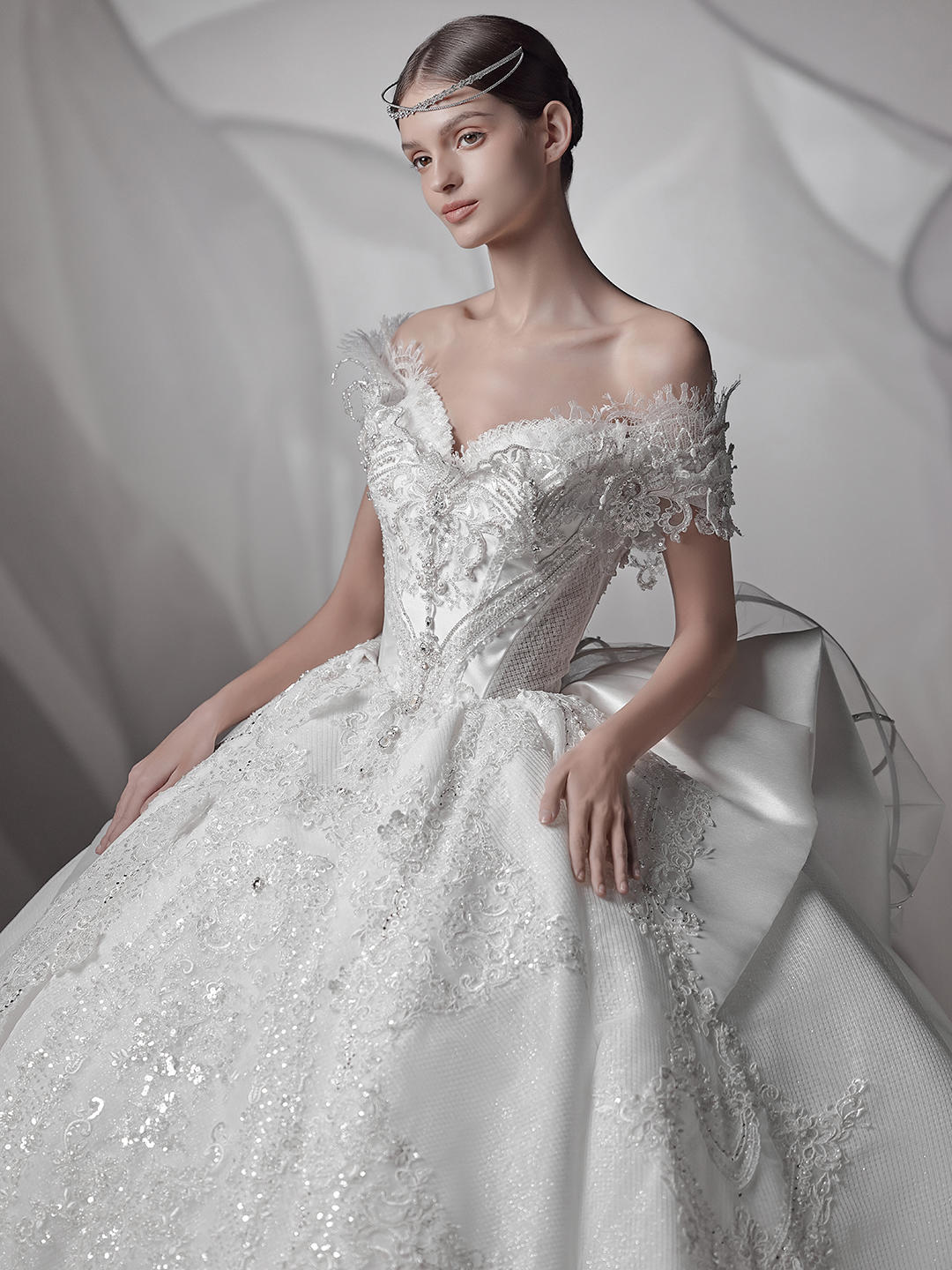 法式气质一字肩主纱