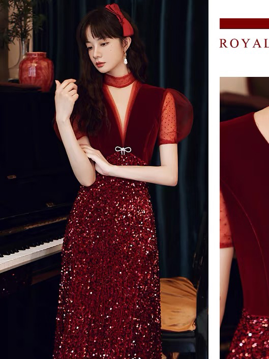 樱桃|【红糖】短款闪闪敬酒服