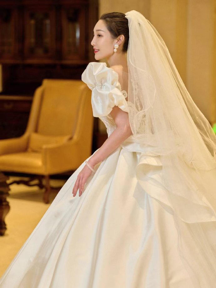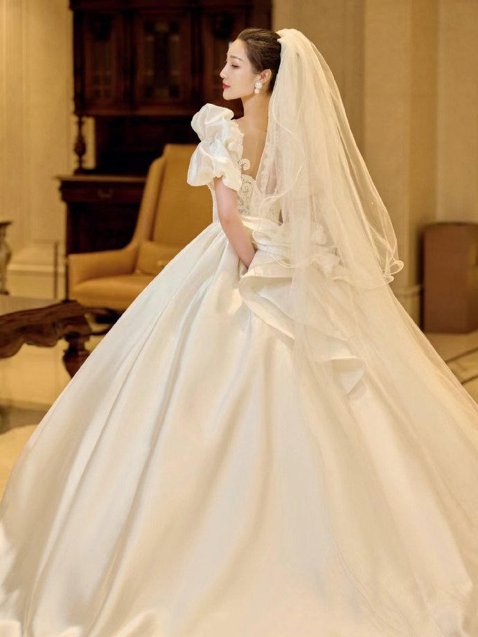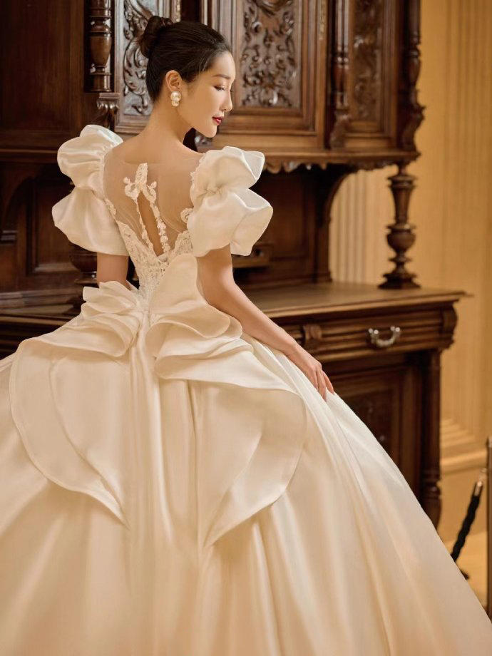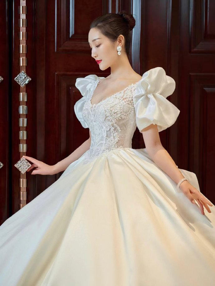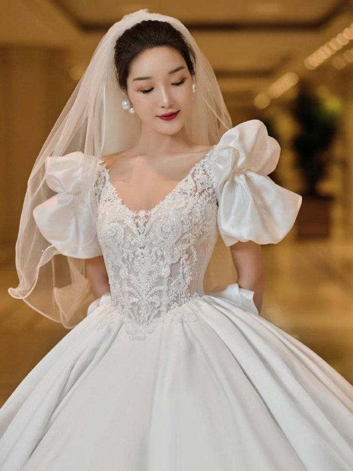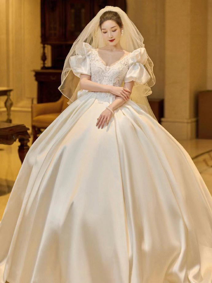 一眼心动的缎面婚纱超美的公主裙