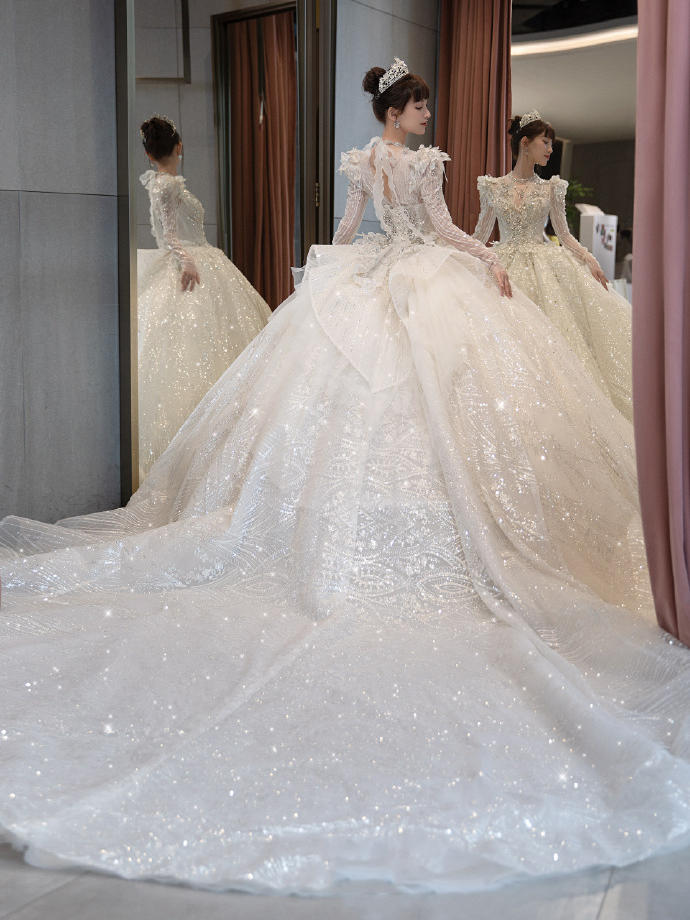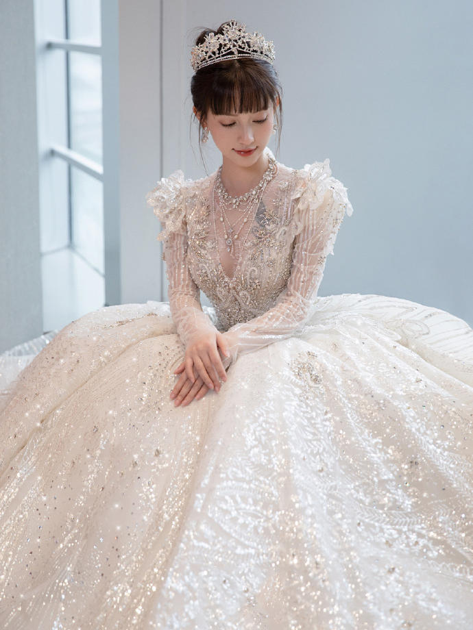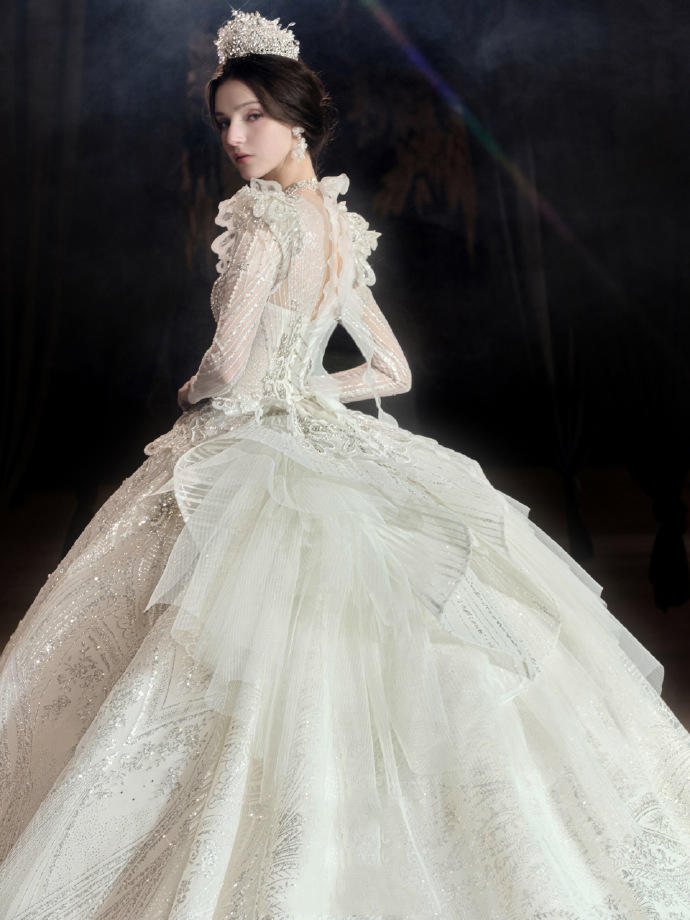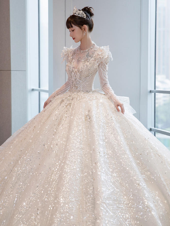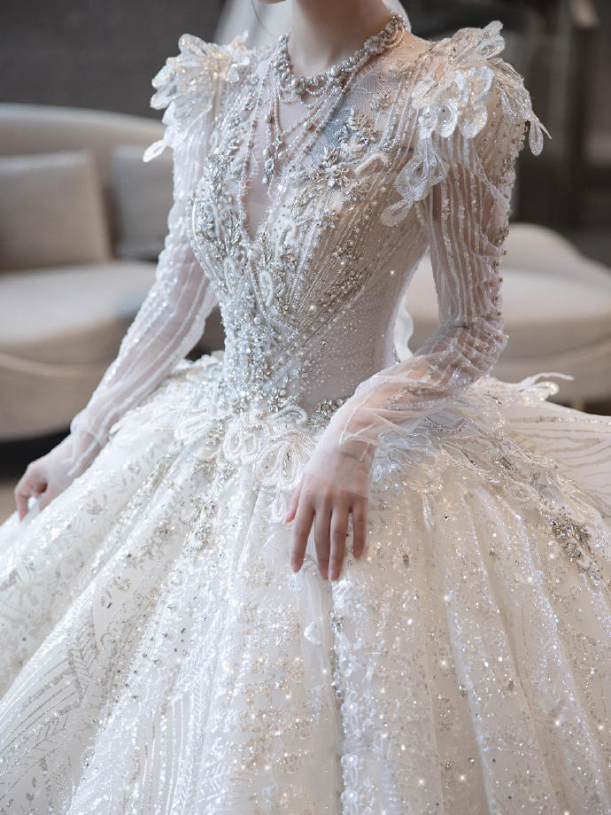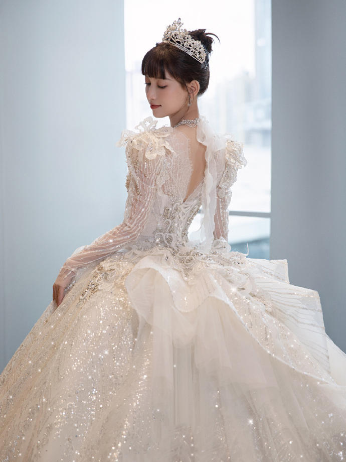 一眼心动的缎面婚纱超美的公主裙