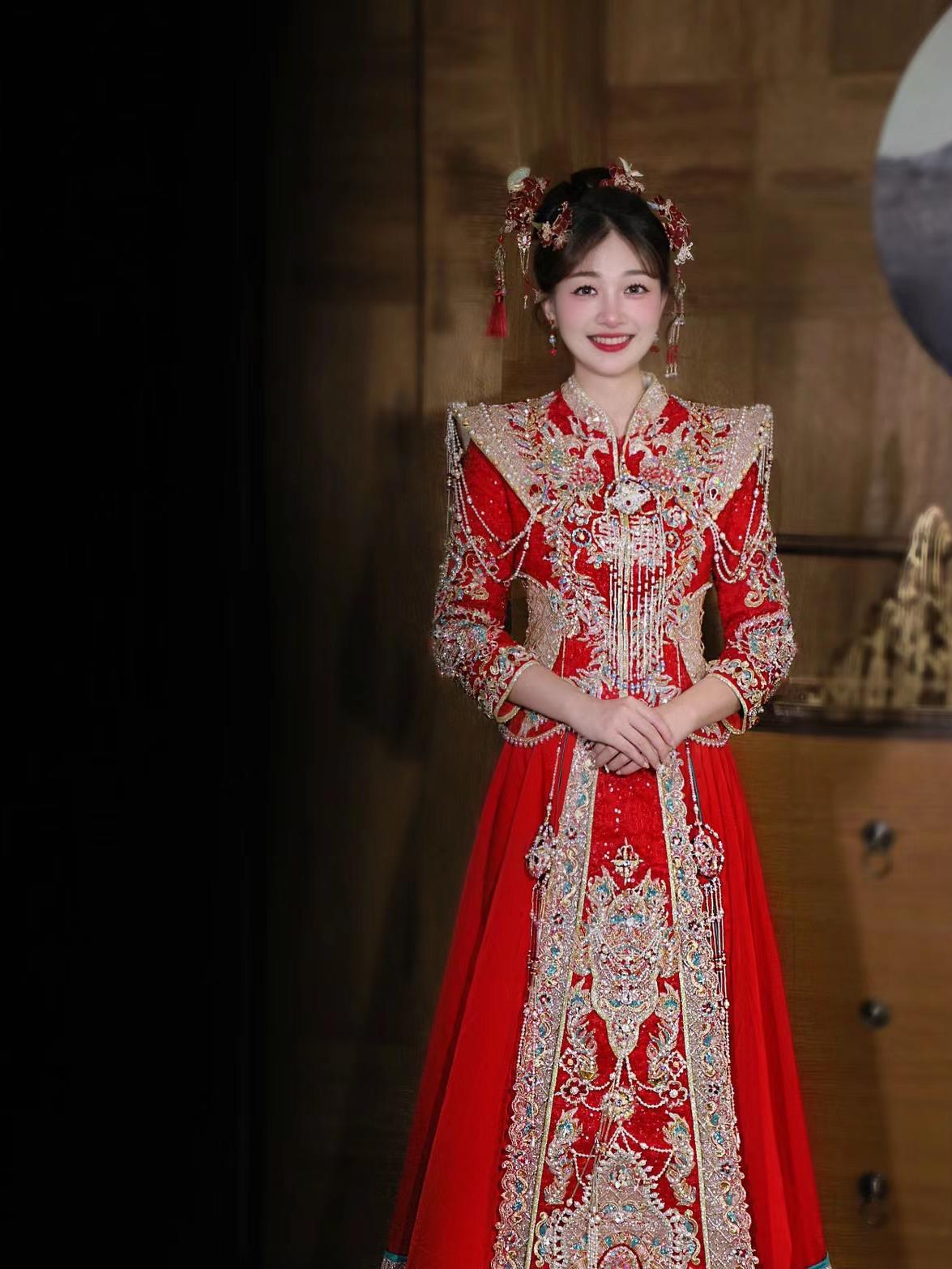 氛围感中式红色秀禾服