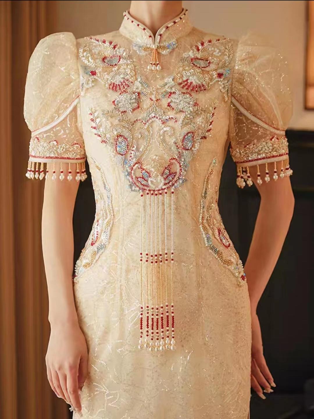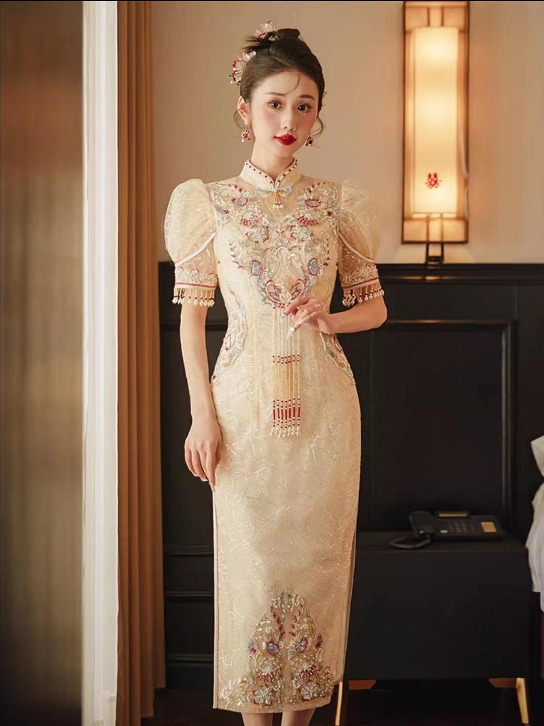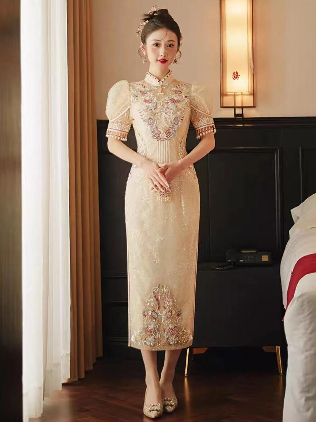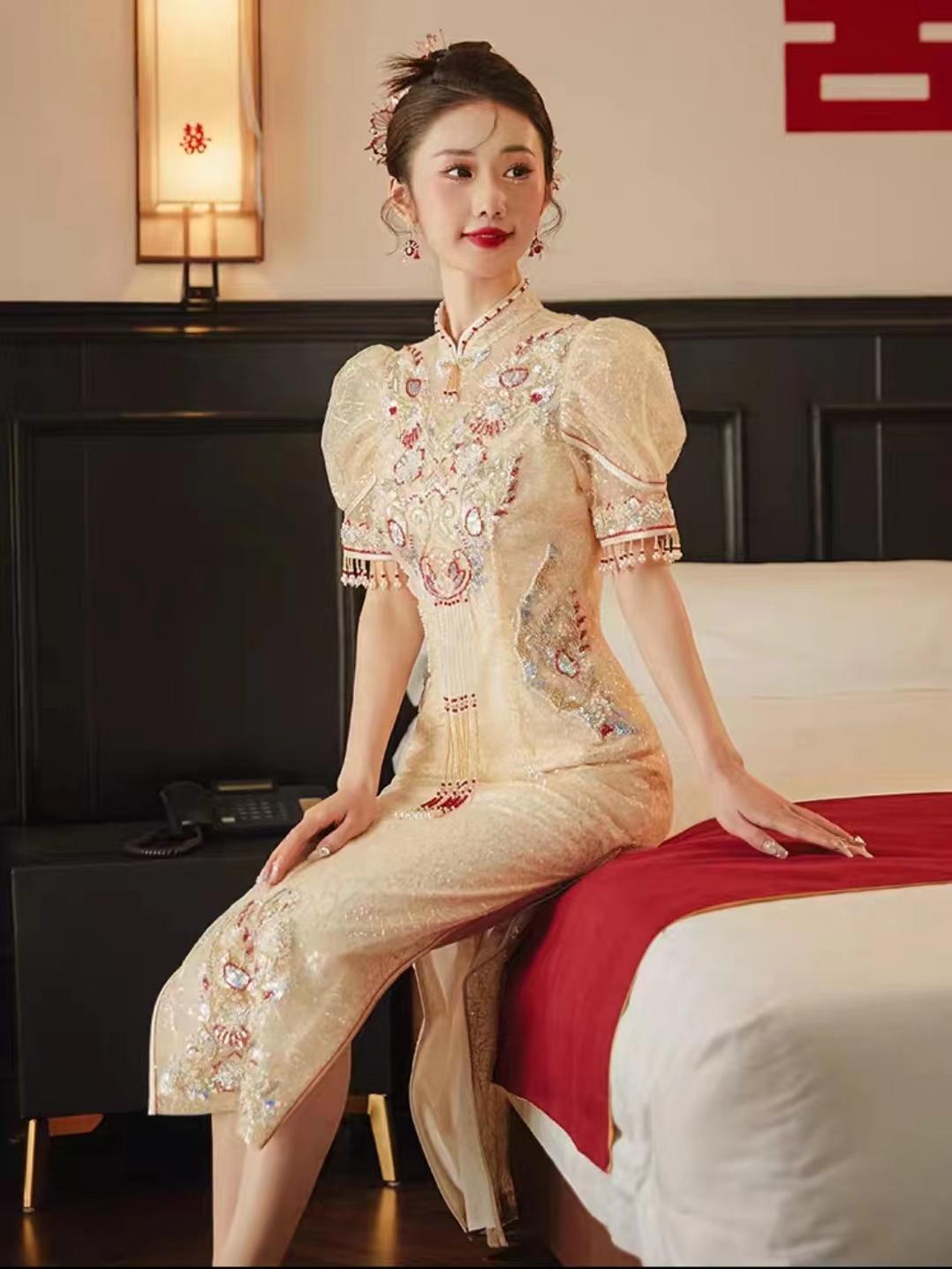 幸福新娘敬酒服旗袍香槟色