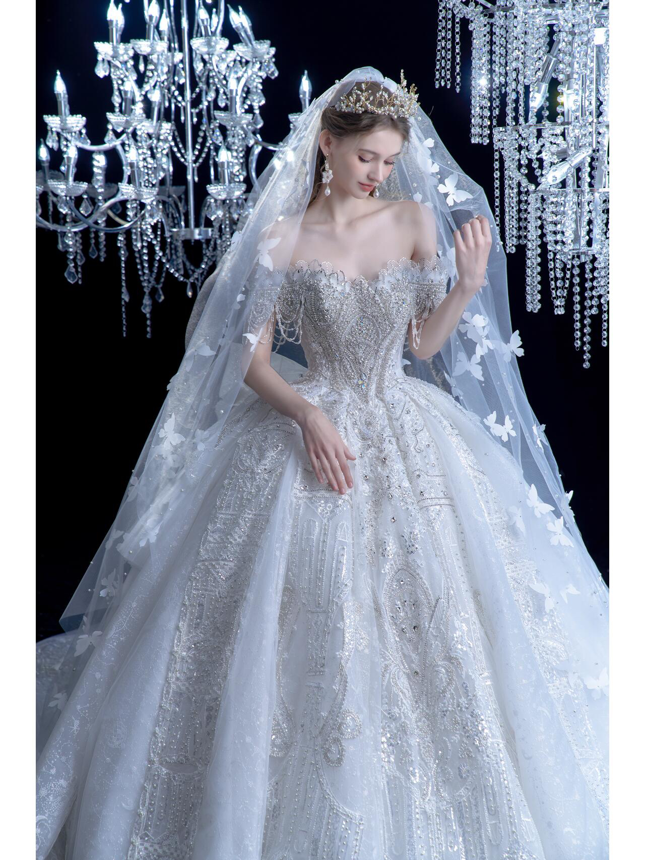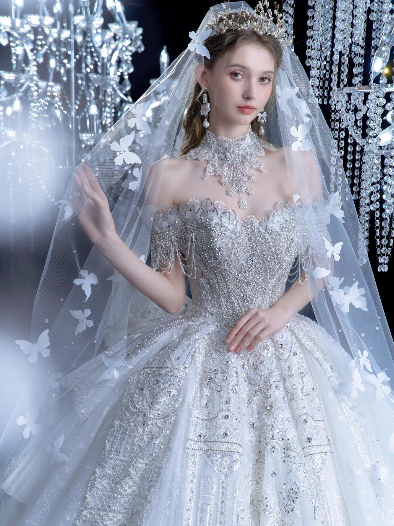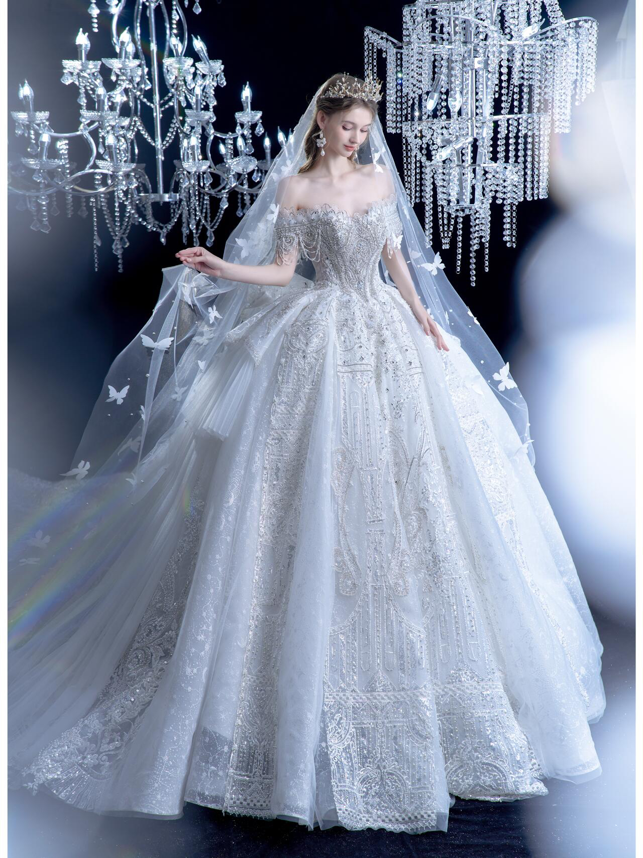 身披梦幻星辰的公主婚纱