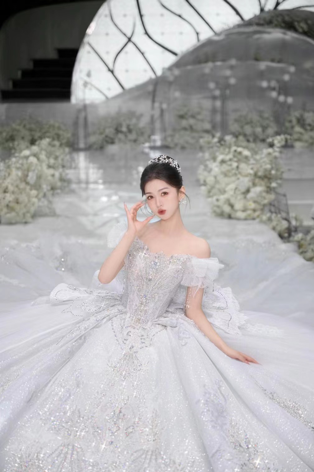 惊艳的花朵婚纱