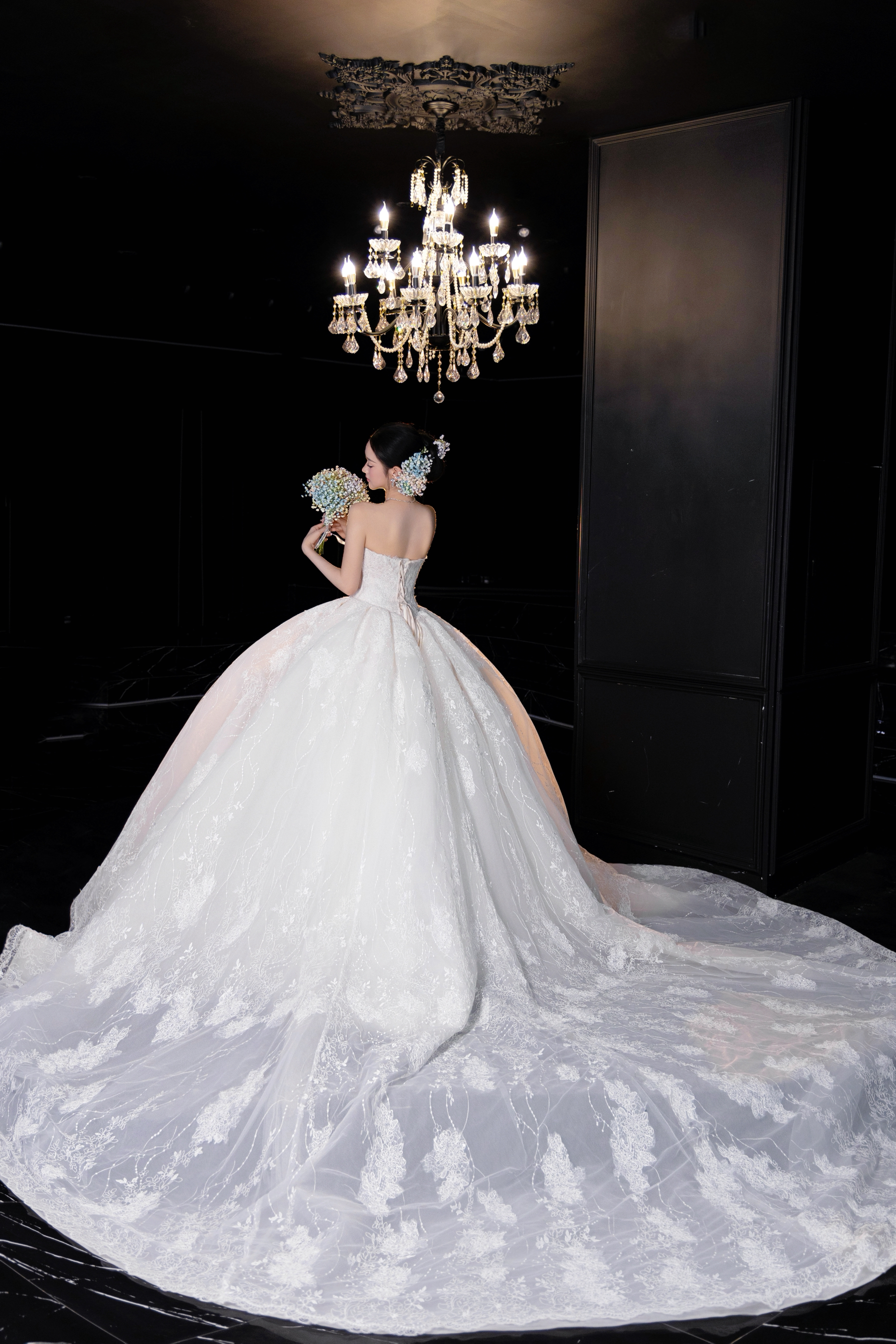 高定闪片羽毛晚礼服