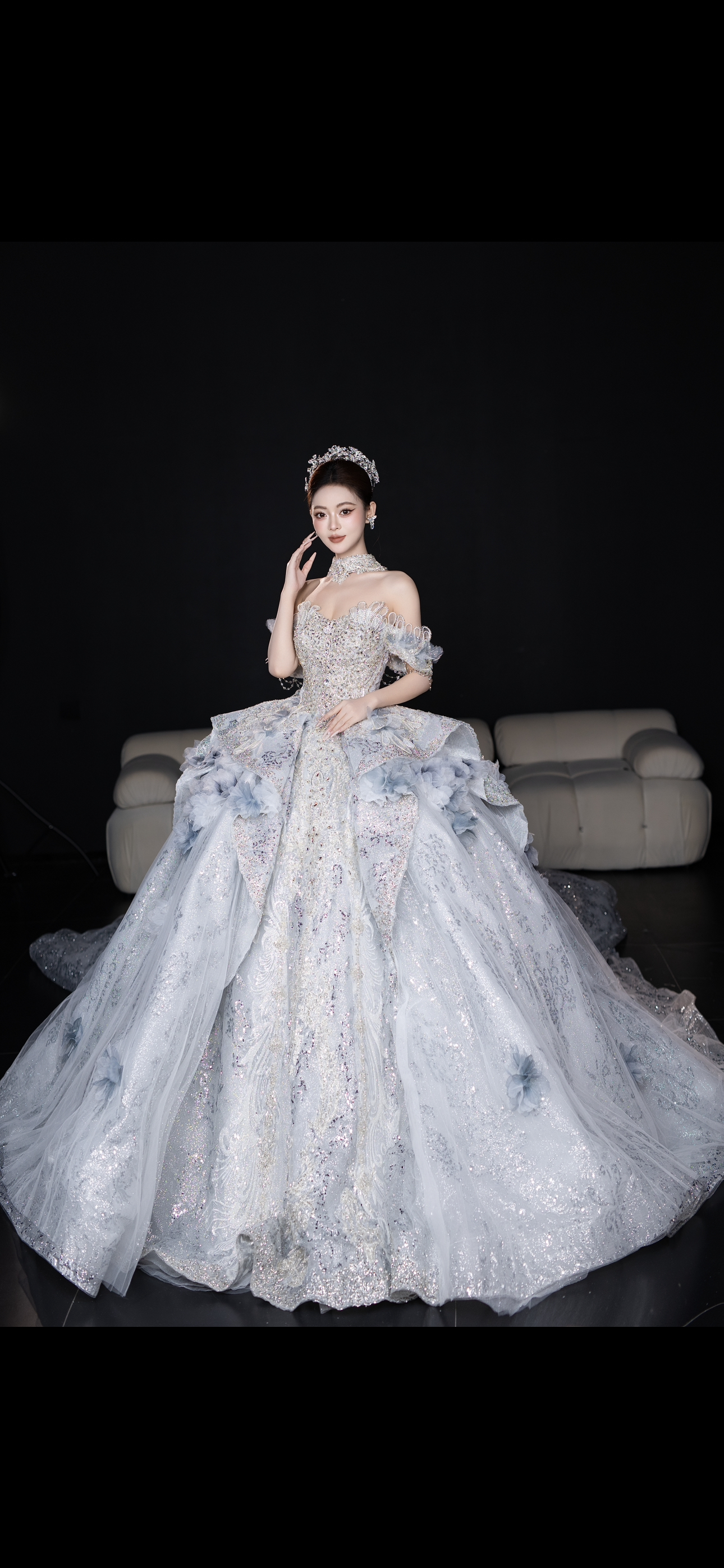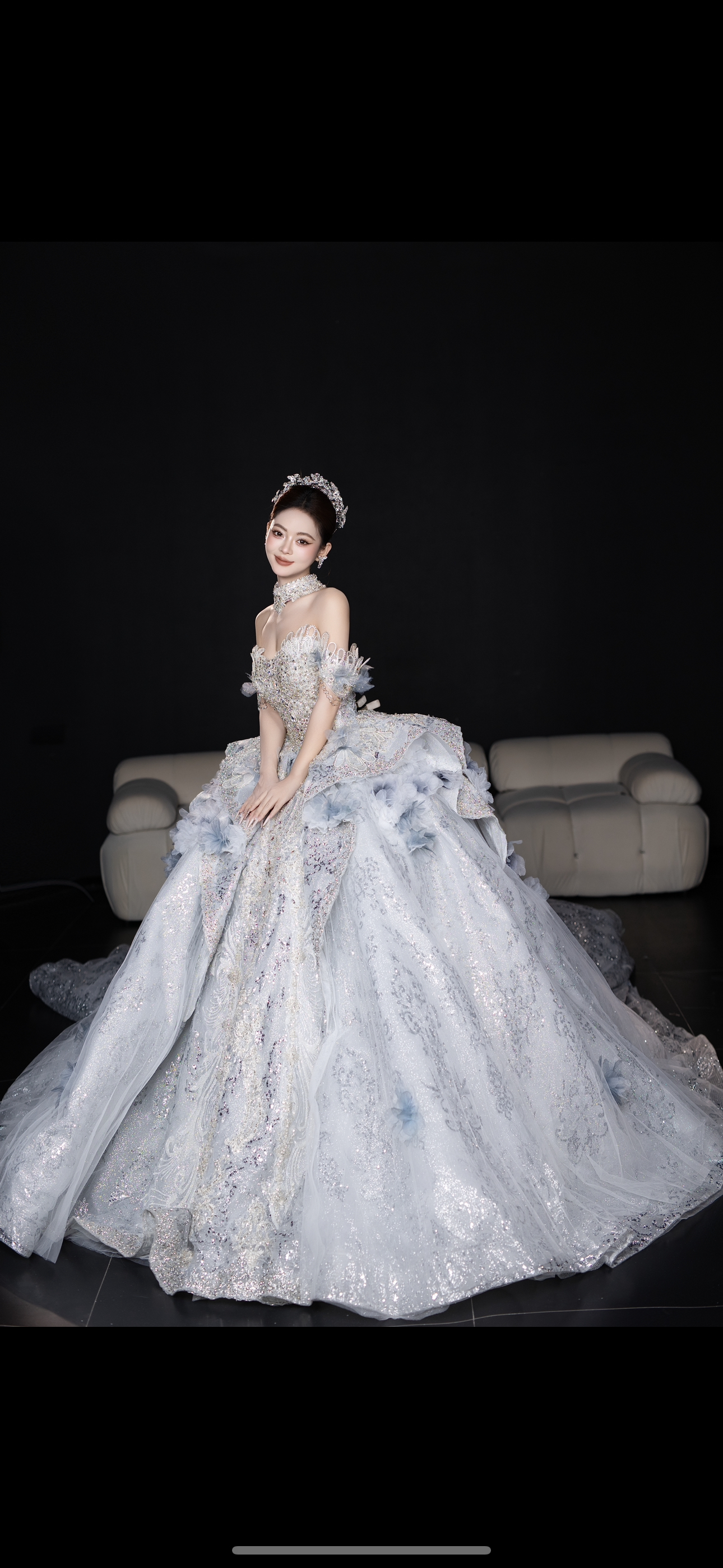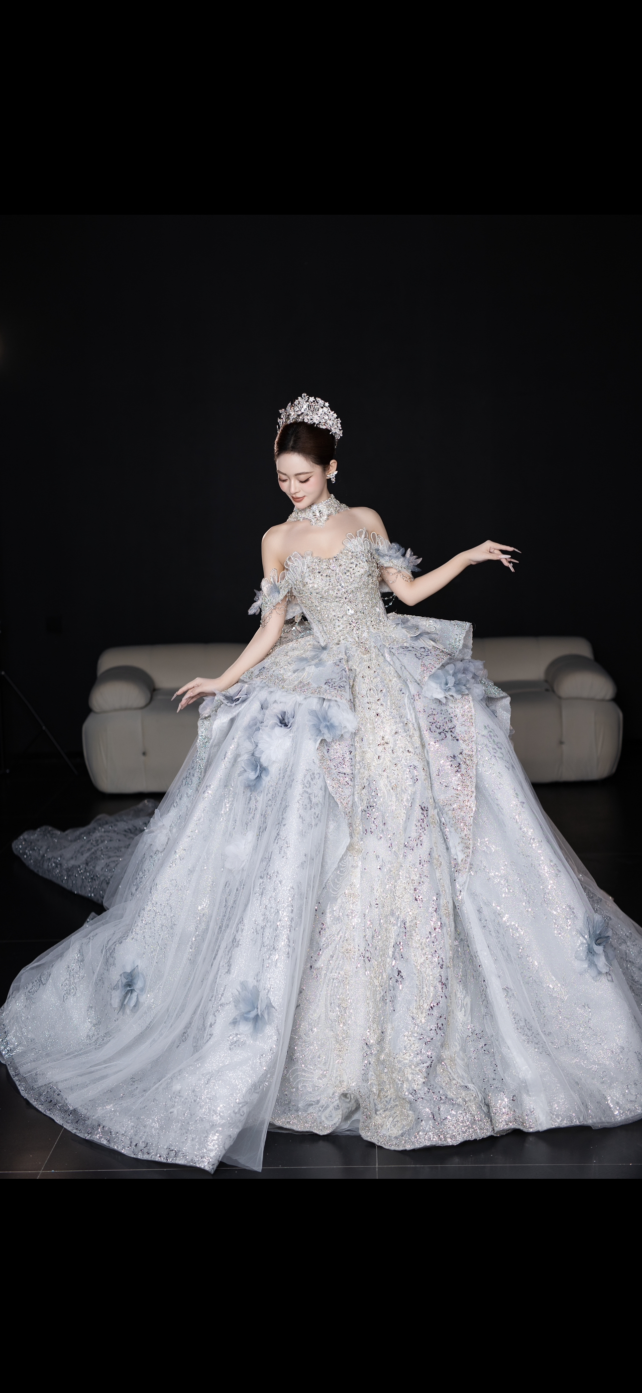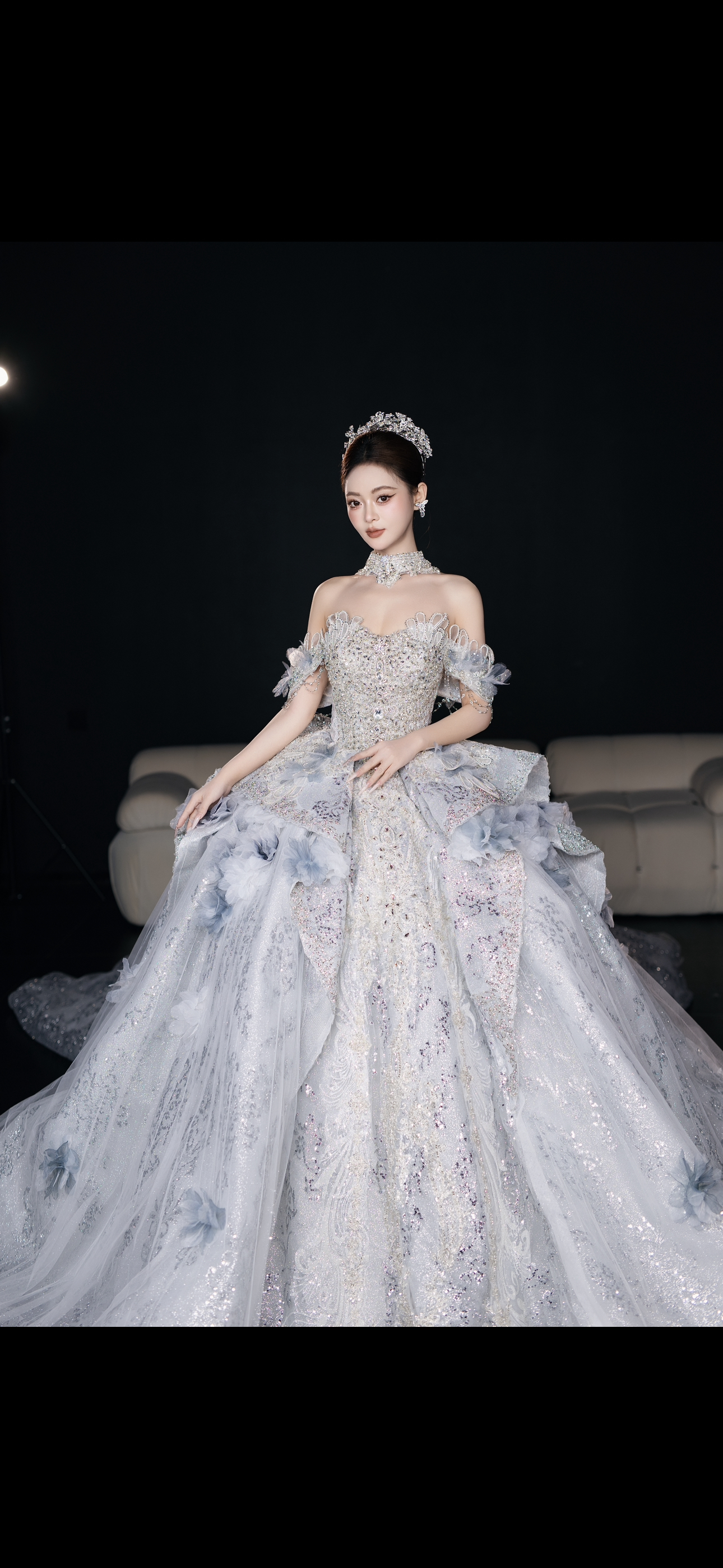 高定闪片羽毛晚礼服