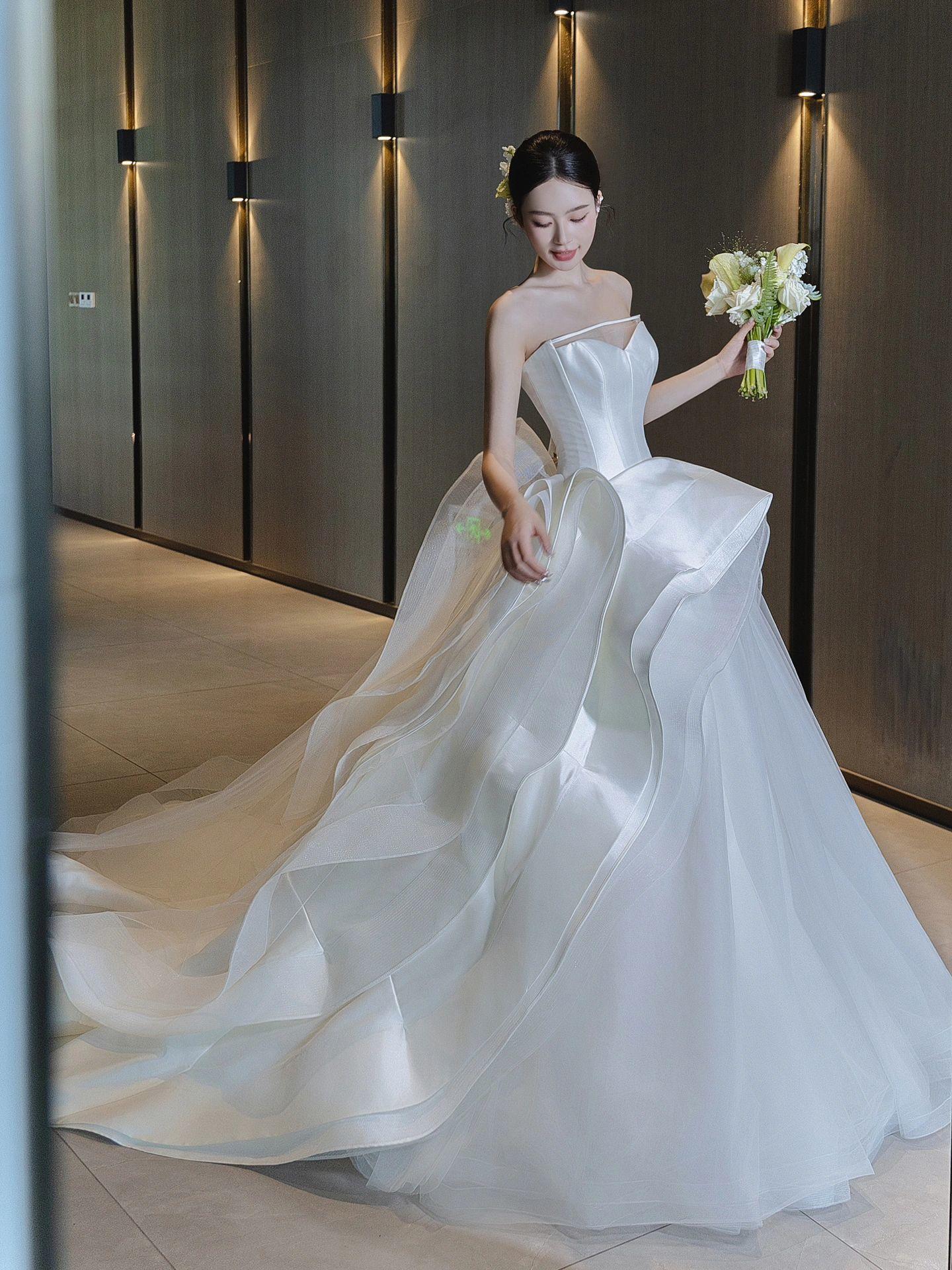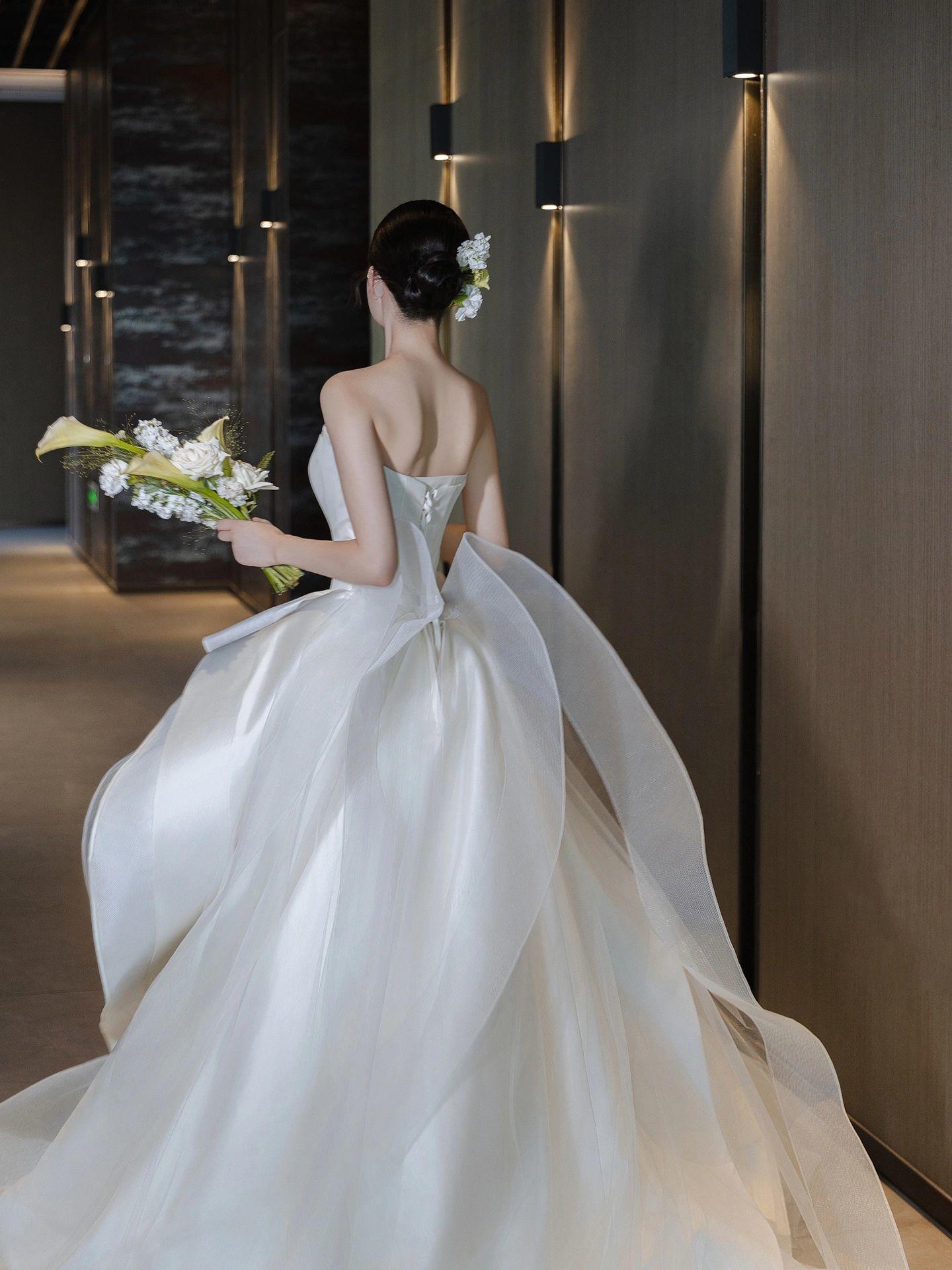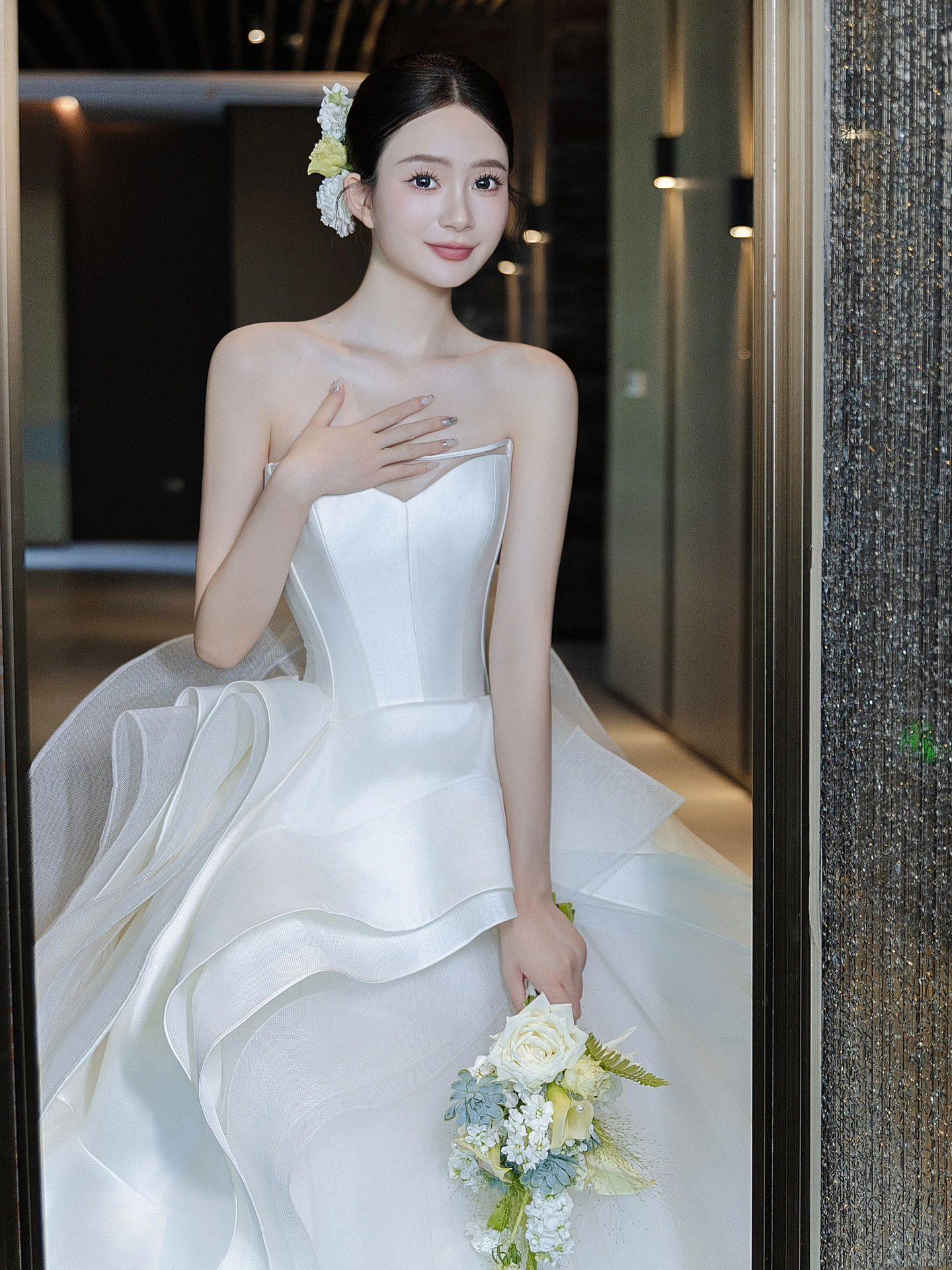 【白月光】新款褶皱缎面高级感婚纱