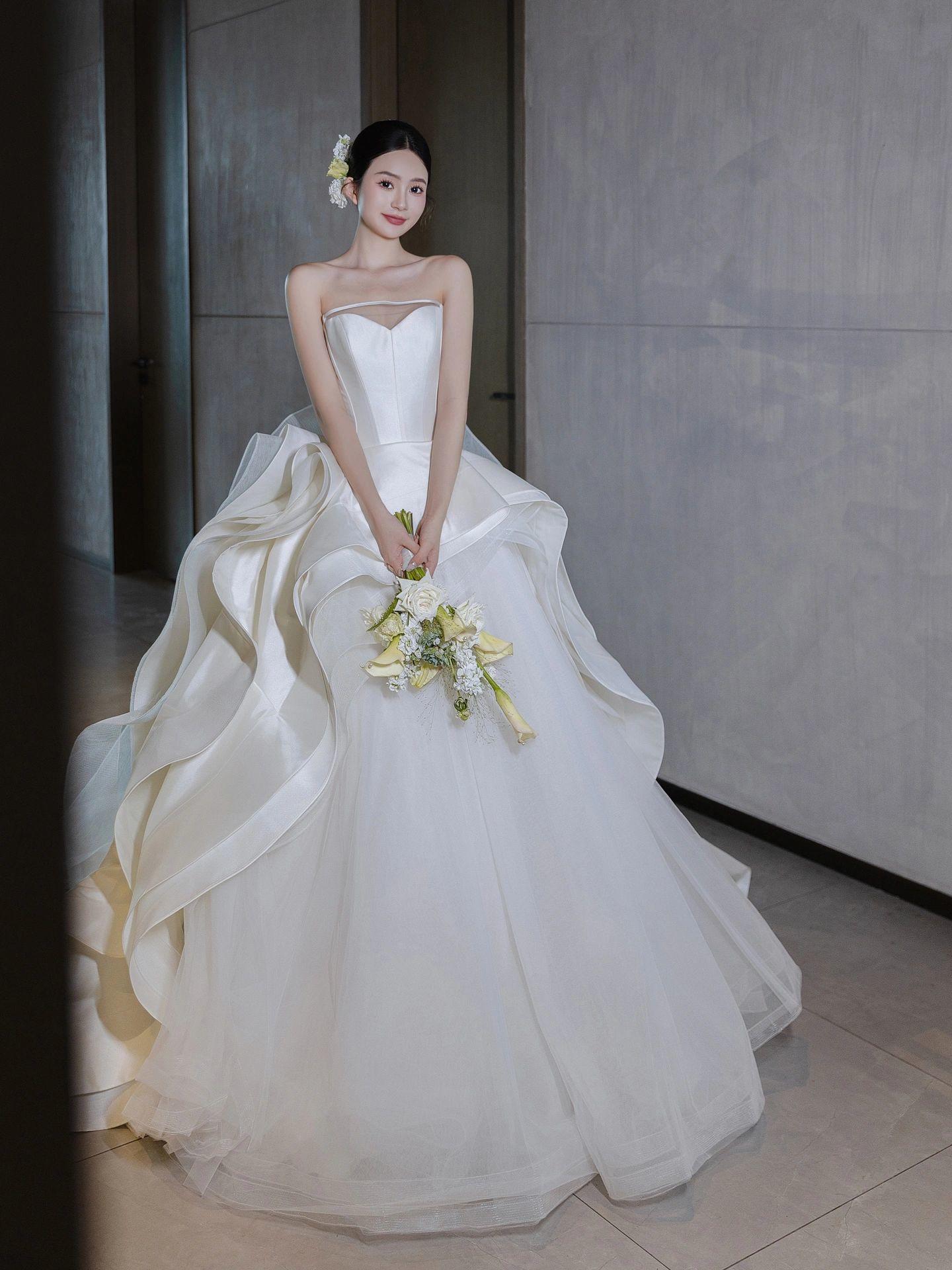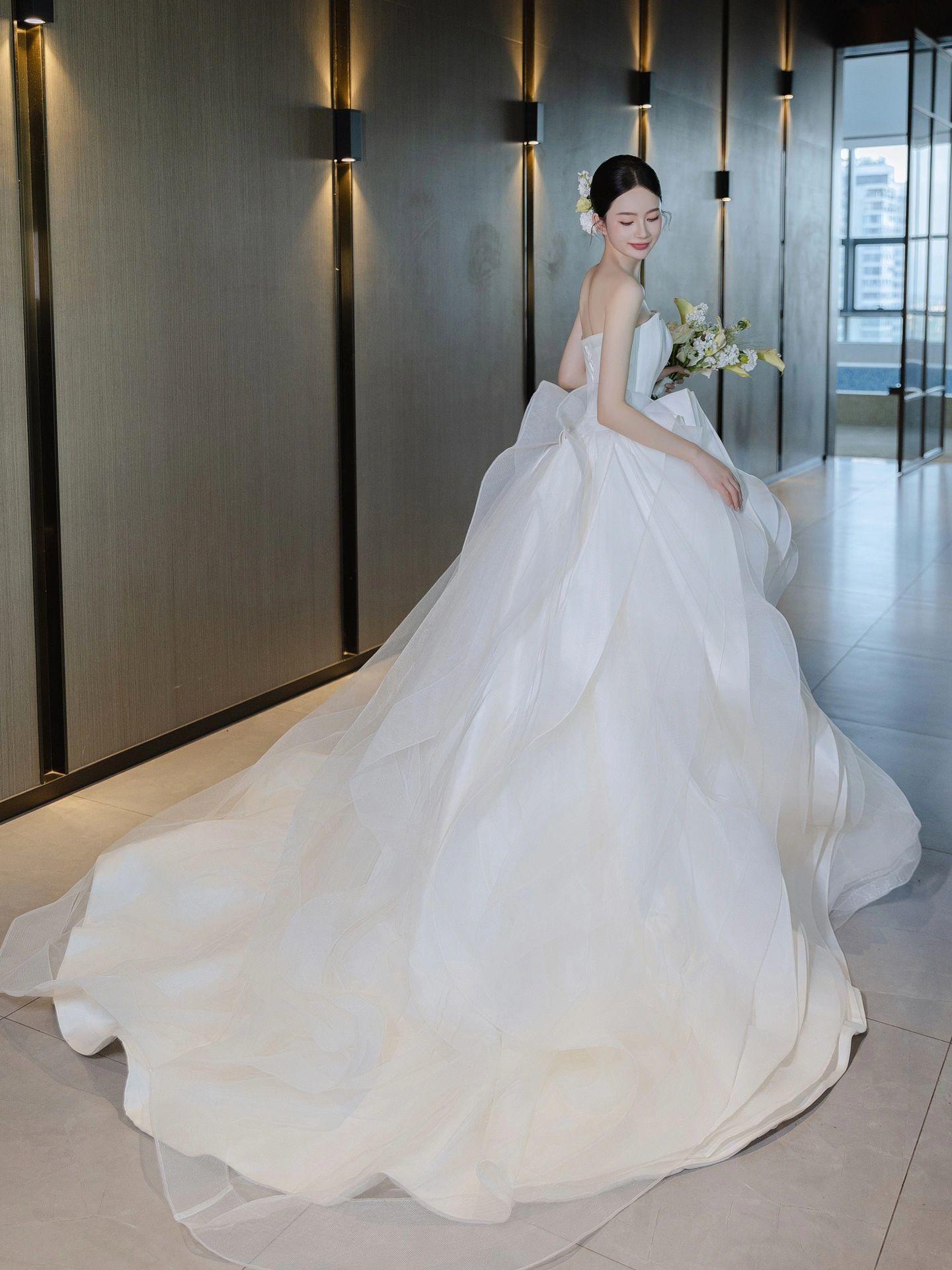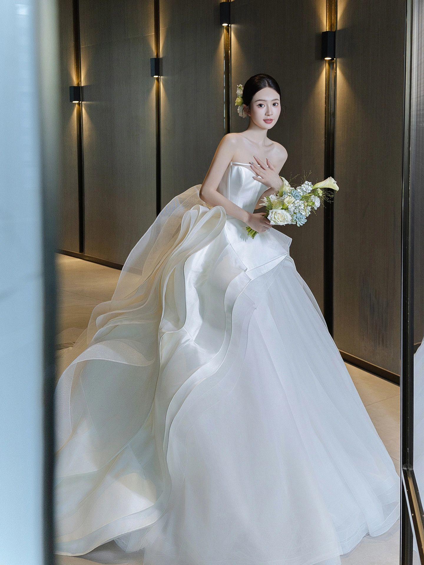 【白月光】新款褶皱缎面高级感婚纱
