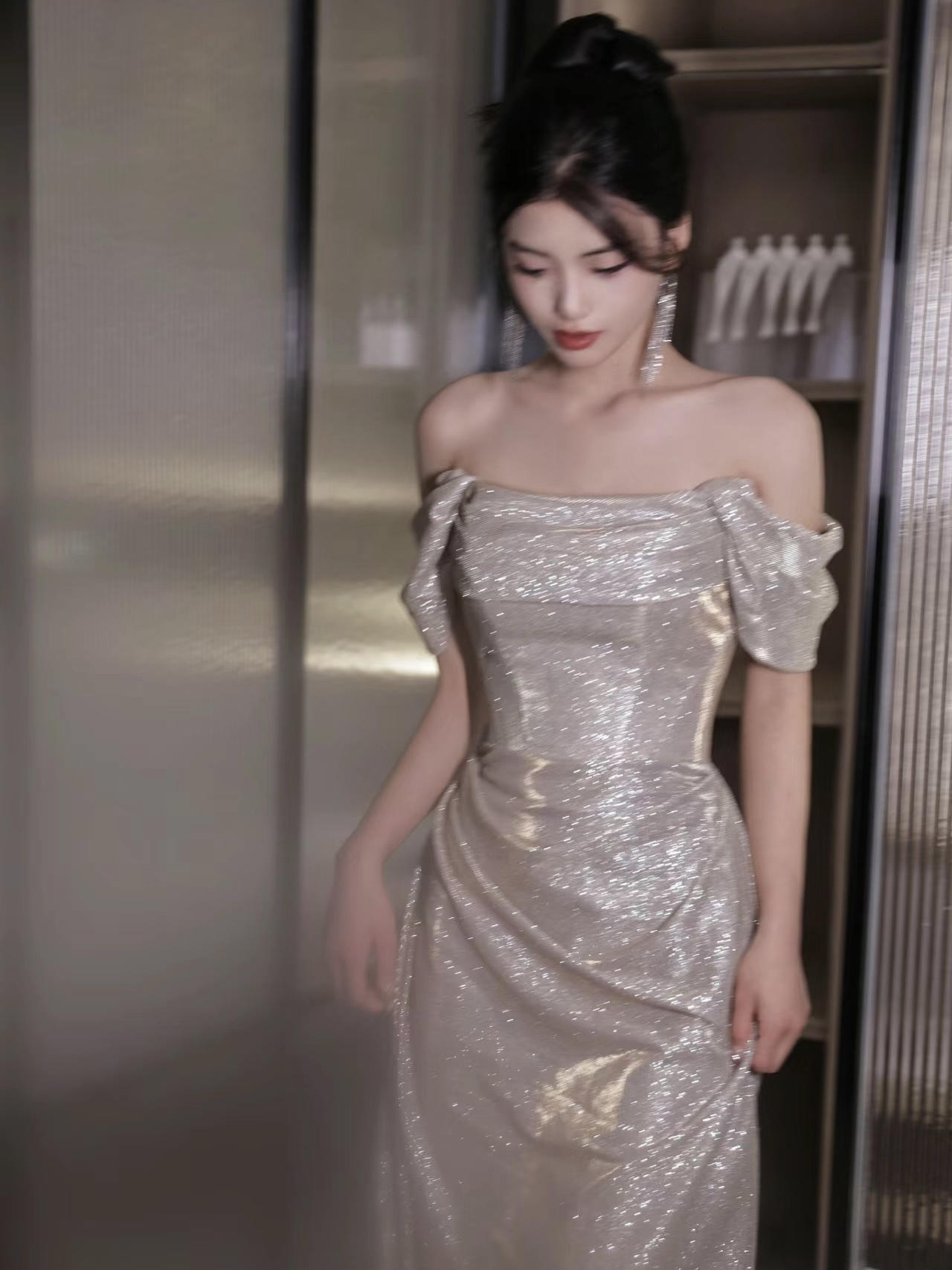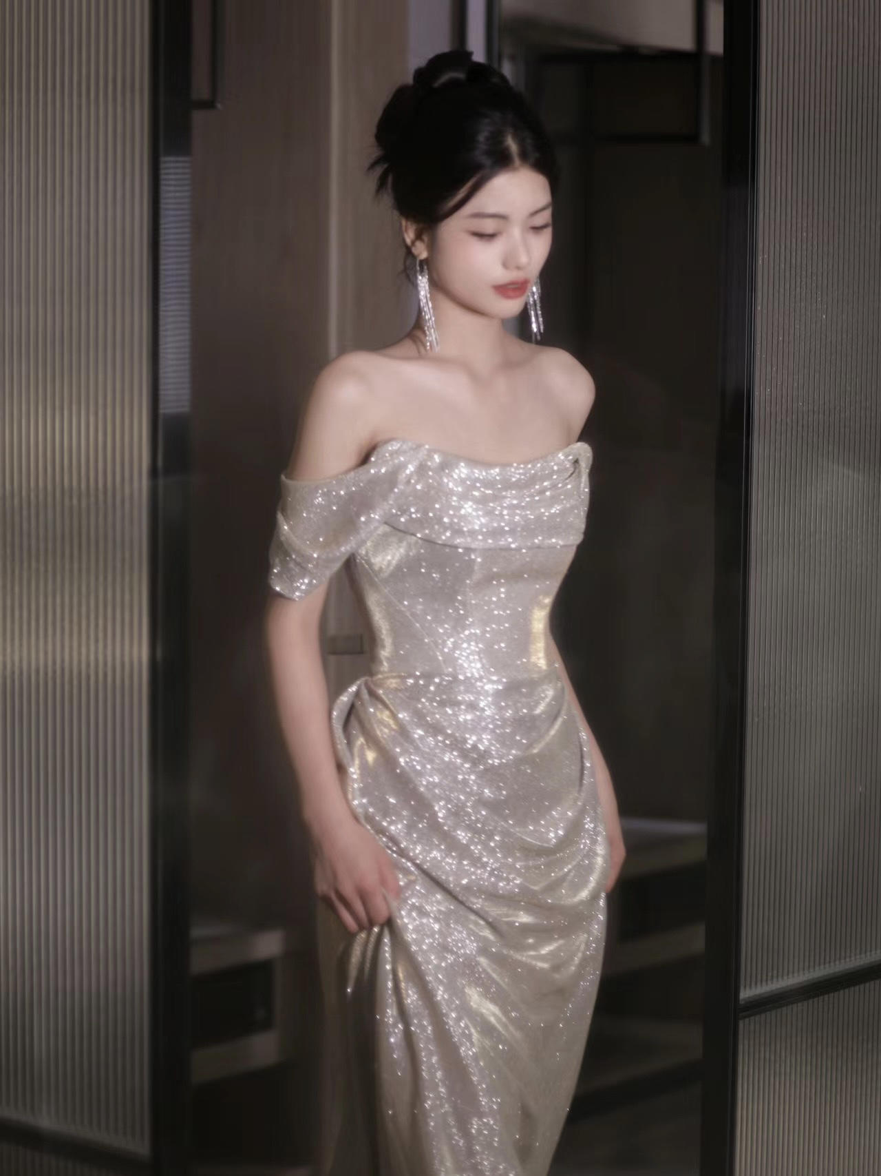 重工一字肩鱼尾主纱