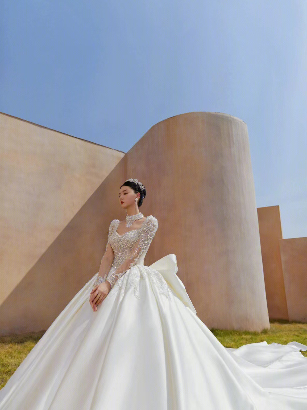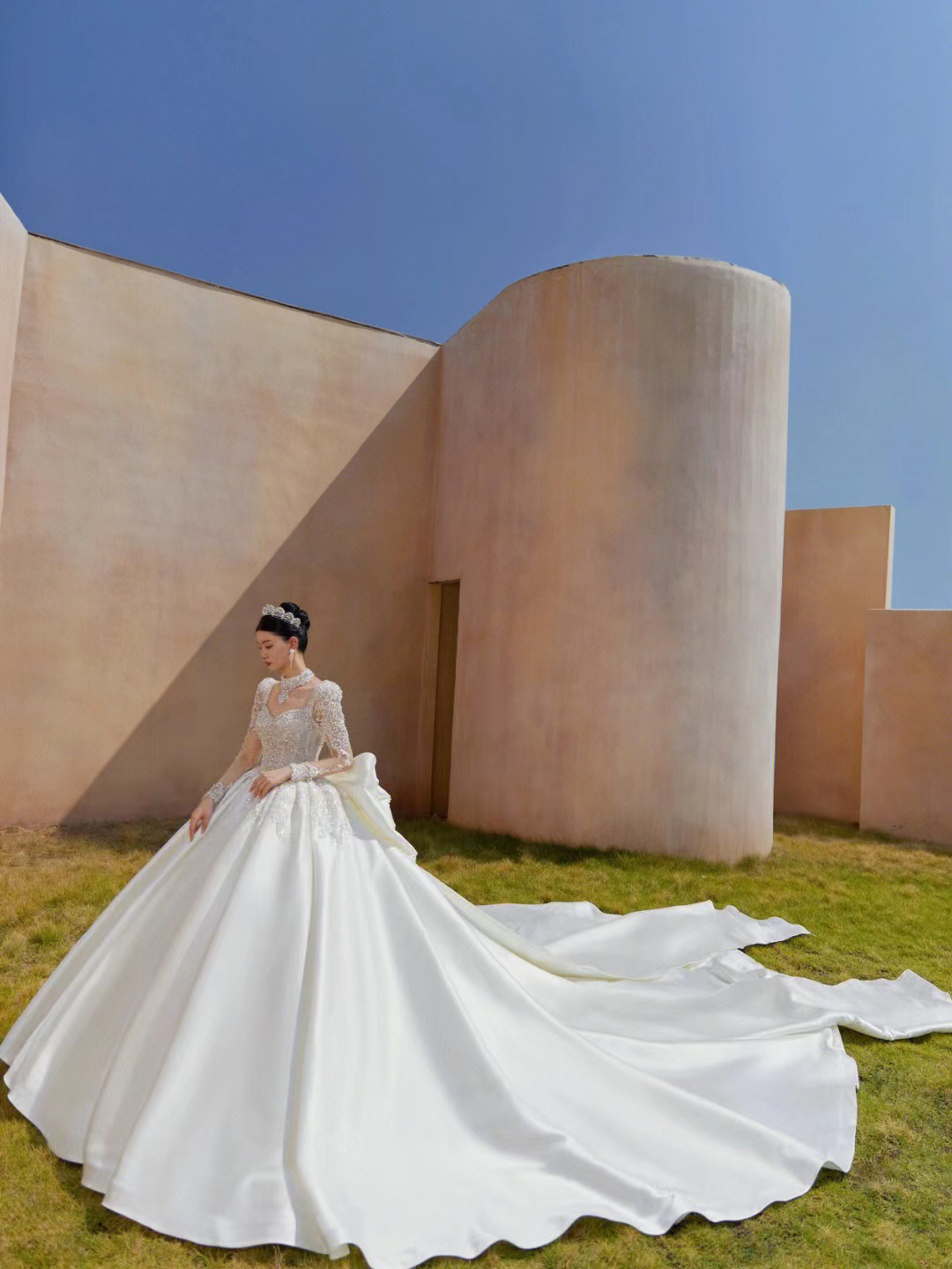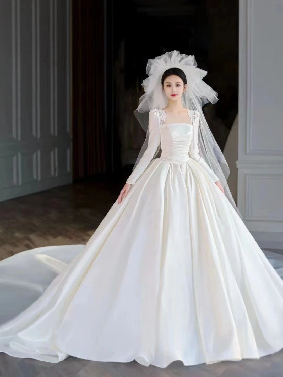 圣白|新款缎面大拖尾主纱